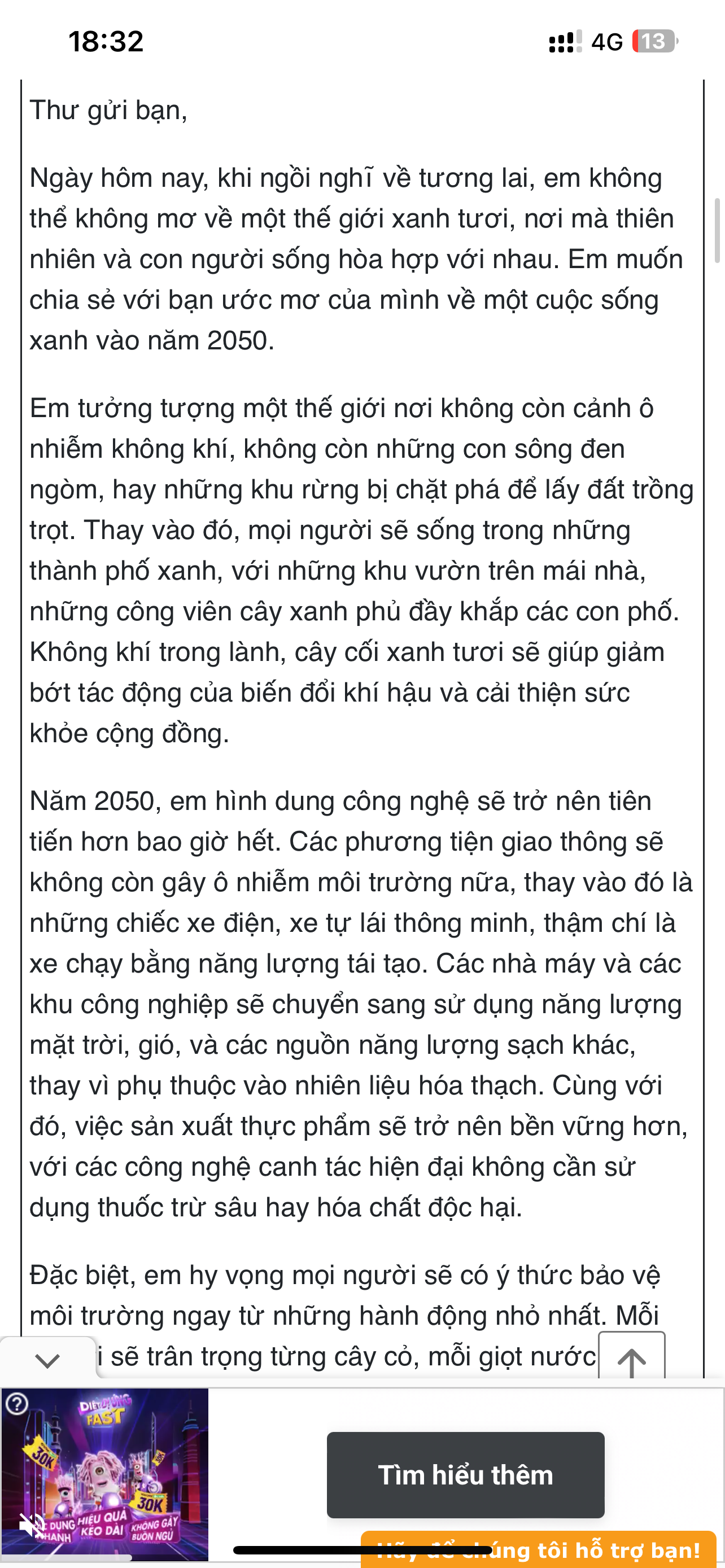 Chia sẻ uớc mơ liên quan đến năng lượng xanh, giáo dục xanh, lối sống xanh về cuộc sống xanh trên Trái đất vào năm 2050.