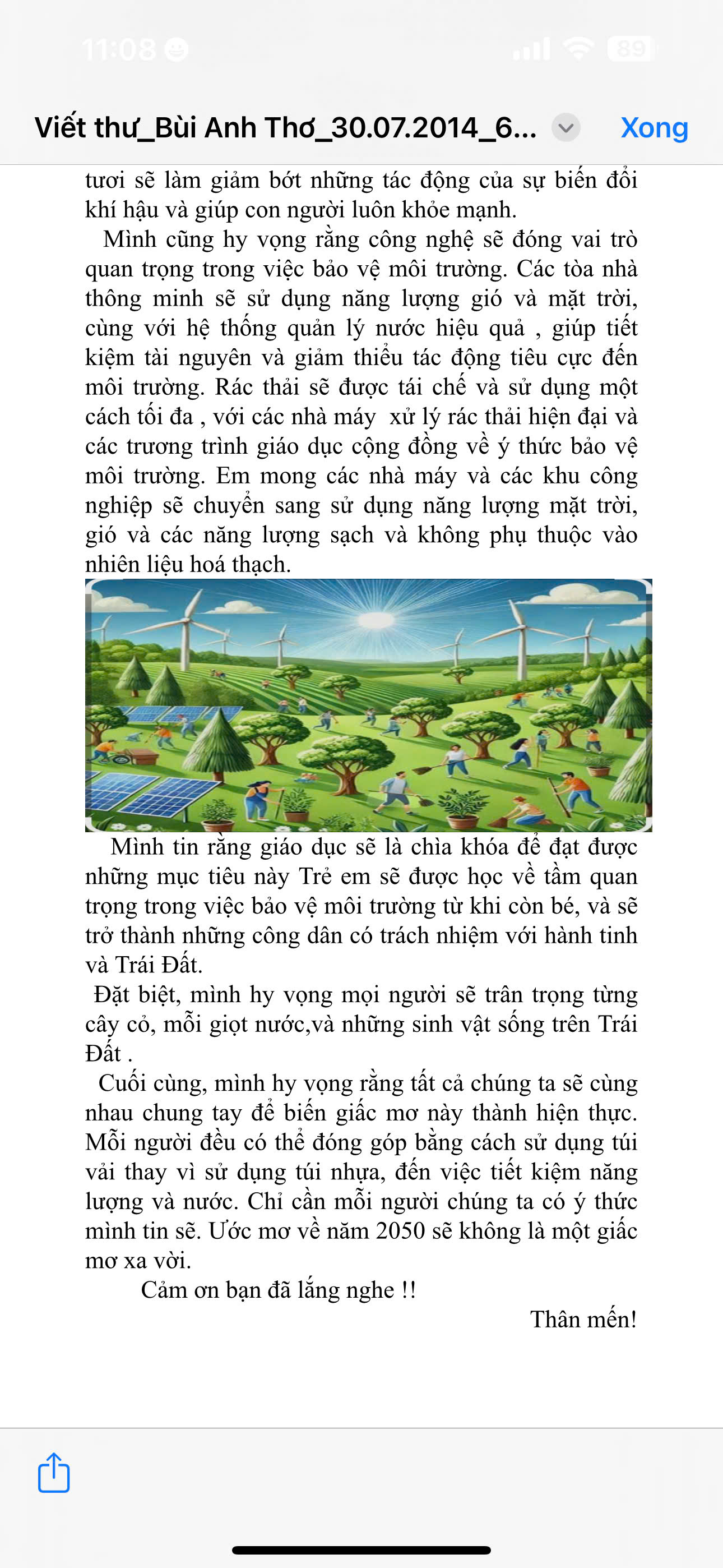 Chia sẻ uớc mơ liên quan đến năng lượng xanh, giáo dục xanh, lối sống xanh về cuộc sống xanh trên Trái đất vào năm 2050.