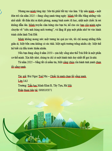 Chia sẻ uớc mơ liên quan đến năng lượng xanh, giáo dục xanh, lối sống xanh về cuộc sống xanh trên Trái đất vào năm 2050.