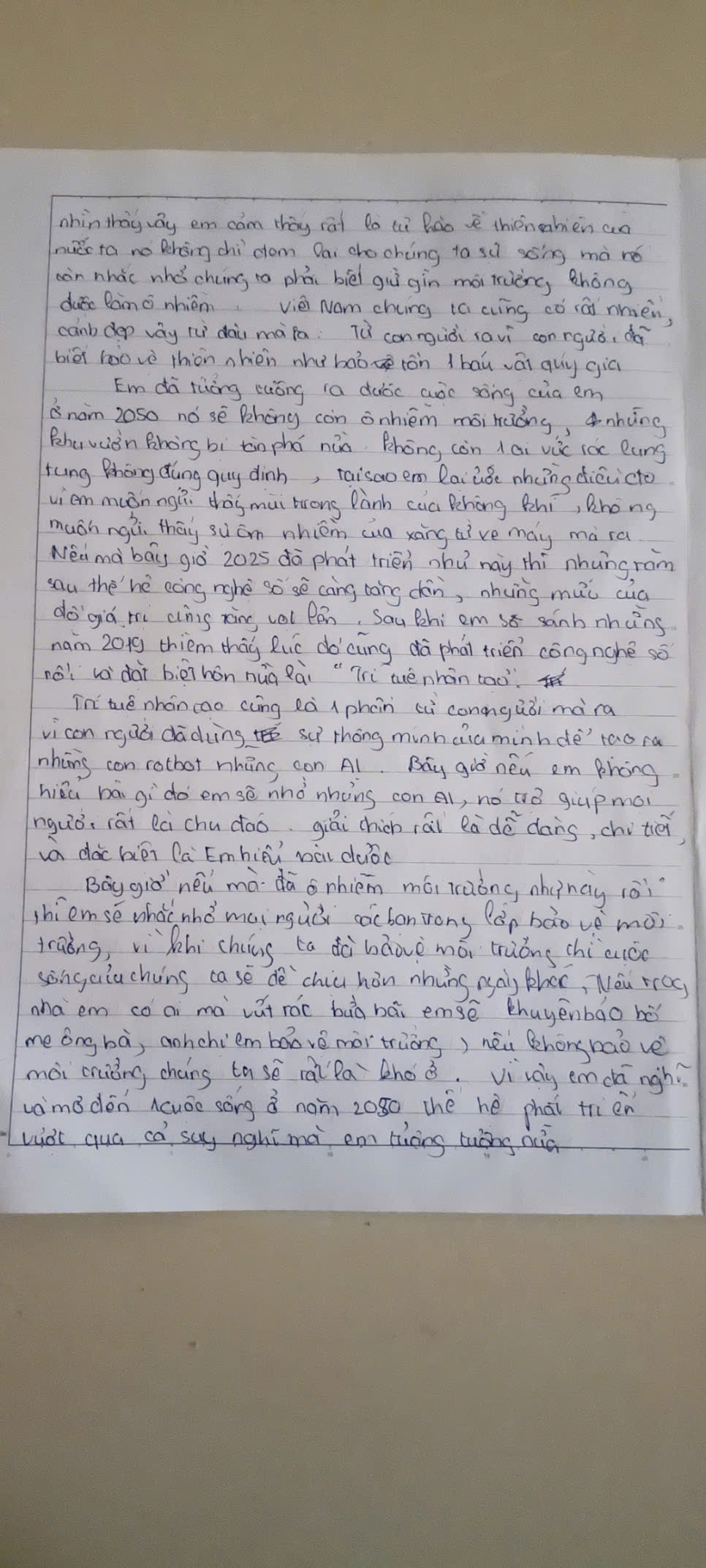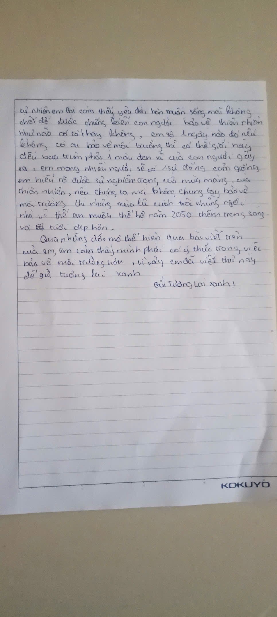 Chia sẻ uớc mơ liên quan đến năng lượng xanh, giáo dục xanh, lối sống xanh về cuộc sống xanh trên Trái đất vào năm 2050.