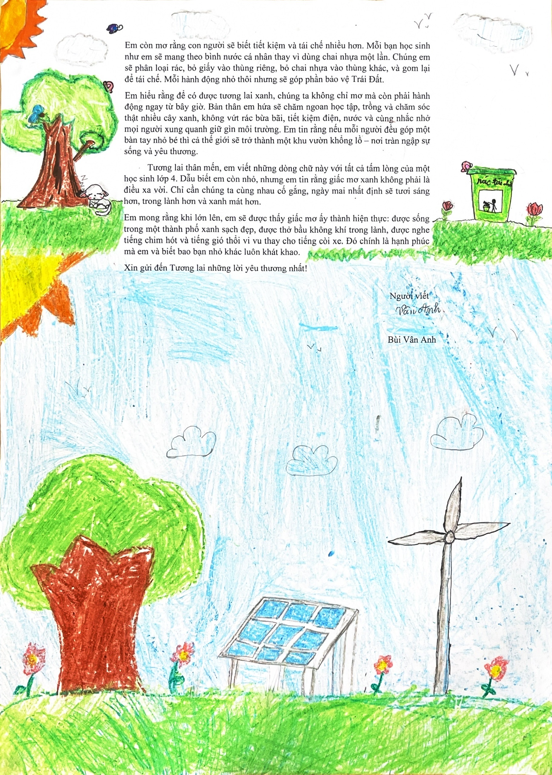 Chia sẻ uớc mơ liên quan đến năng lượng xanh, giáo dục xanh, lối sống xanh về cuộc sống xanh trên Trái đất vào năm 2050.