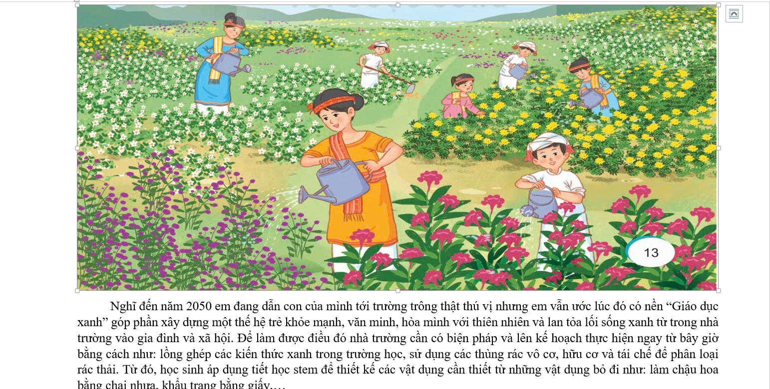 Chia sẻ uớc mơ liên quan đến năng lượng xanh, giáo dục xanh, lối sống xanh về cuộc sống xanh trên Trái đất vào năm 2050.