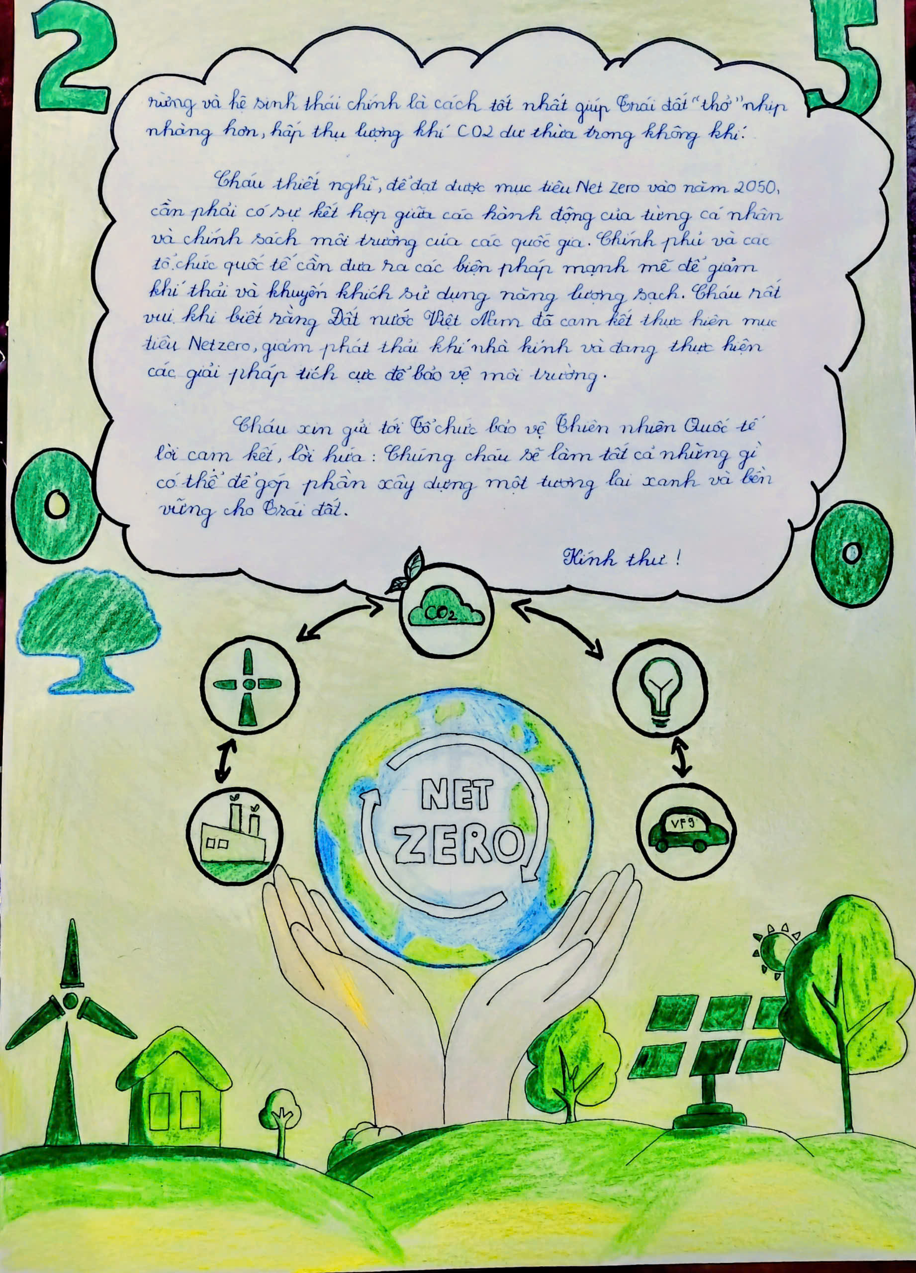Chia sẻ uớc mơ liên quan đến năng lượng xanh, giáo dục xanh, lối sống xanh về cuộc sống xanh trên Trái đất vào năm 2050.