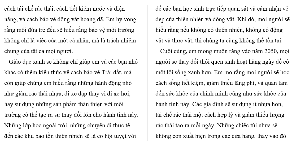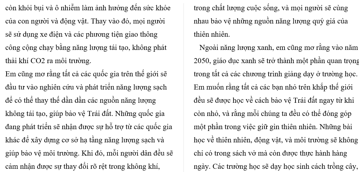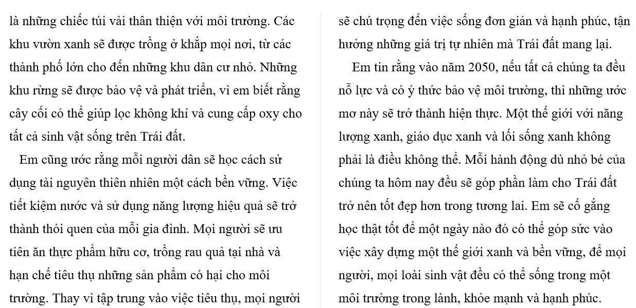 Chia sẻ uớc mơ liên quan đến năng lượng xanh, giáo dục xanh, lối sống xanh về cuộc sống xanh trên Trái đất vào năm 2050.