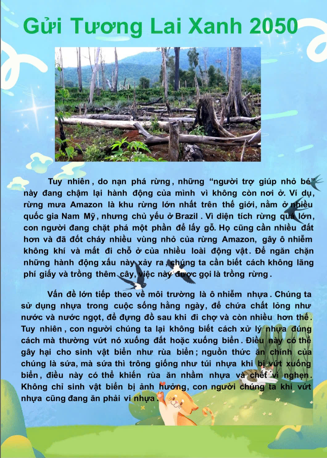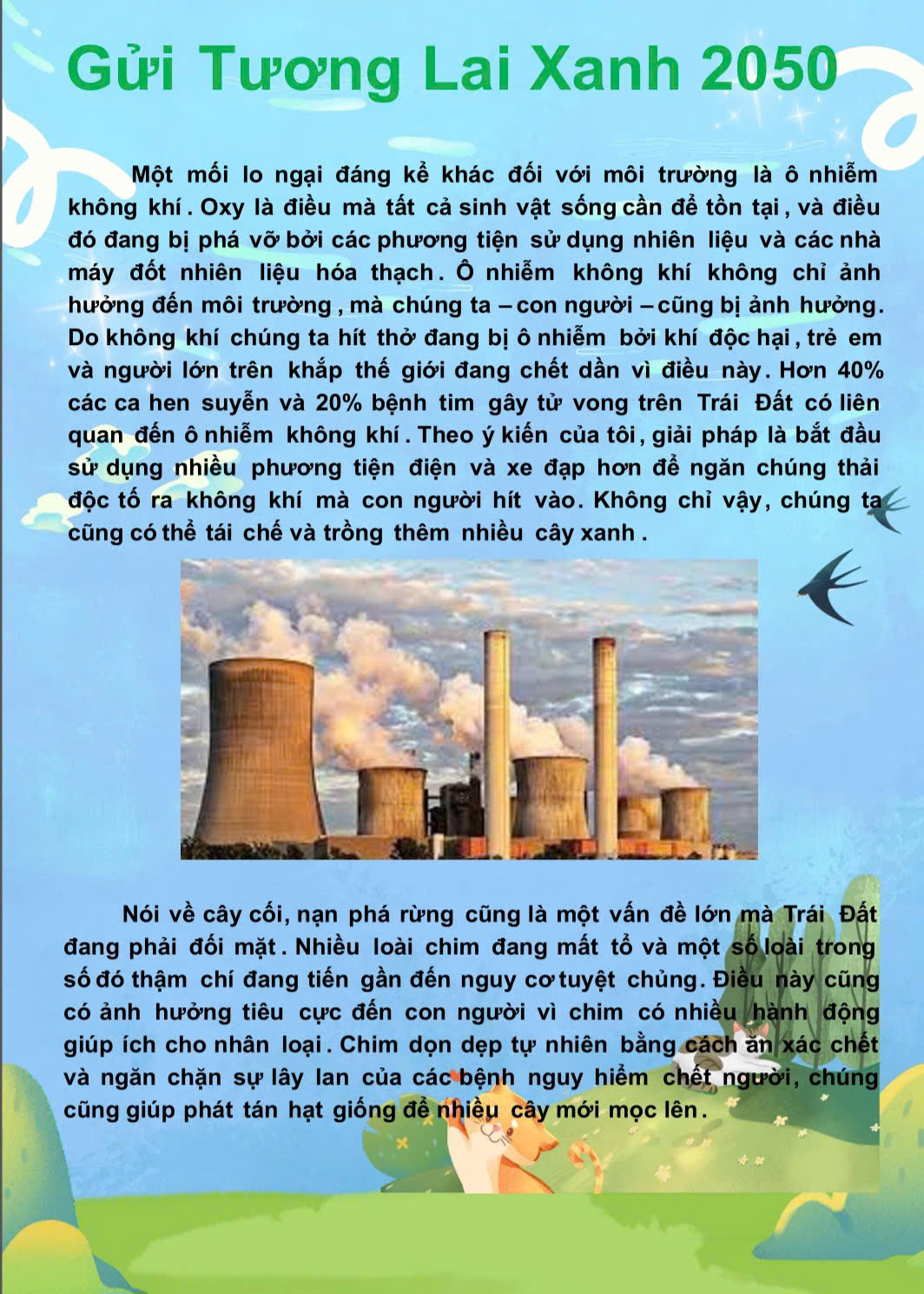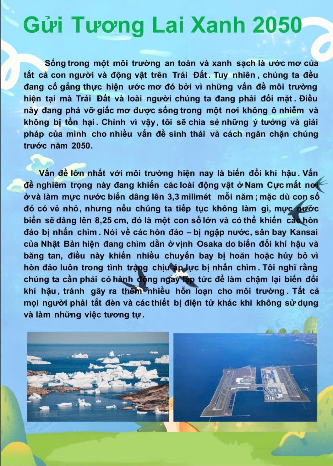Chia sẻ uớc mơ liên quan đến năng lượng xanh, giáo dục xanh, lối sống xanh về cuộc sống xanh trên Trái đất vào năm 2050.
