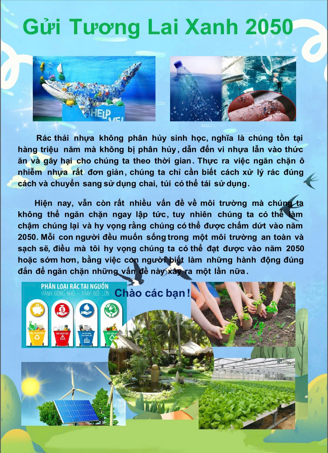 Chia sẻ uớc mơ liên quan đến năng lượng xanh, giáo dục xanh, lối sống xanh về cuộc sống xanh trên Trái đất vào năm 2050.