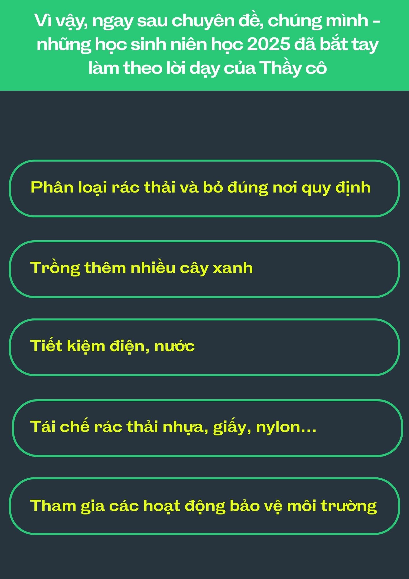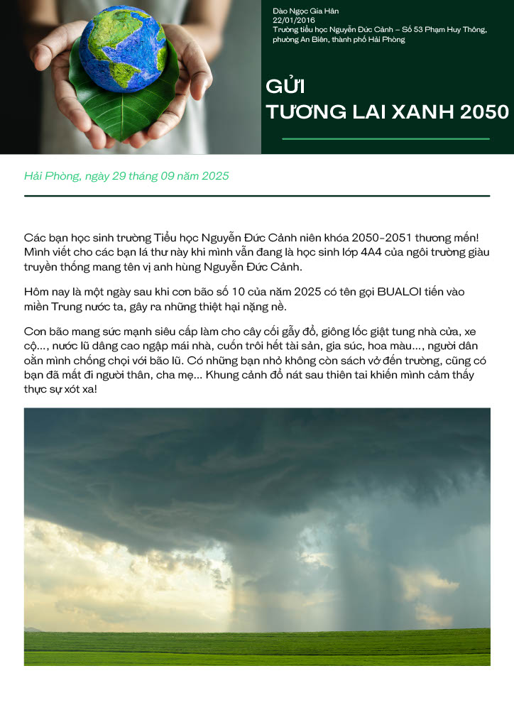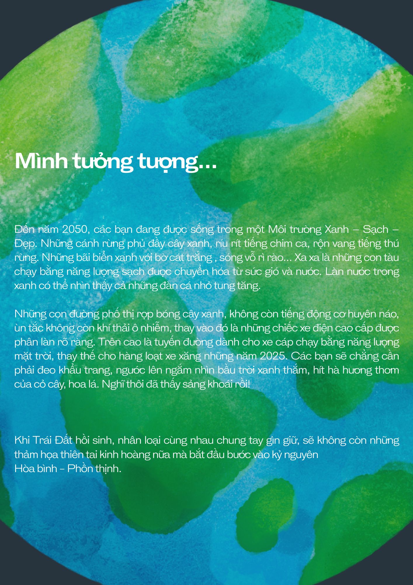 Chia sẻ uớc mơ liên quan đến năng lượng xanh, giáo dục xanh, lối sống xanh về cuộc sống xanh trên Trái đất vào năm 2050.