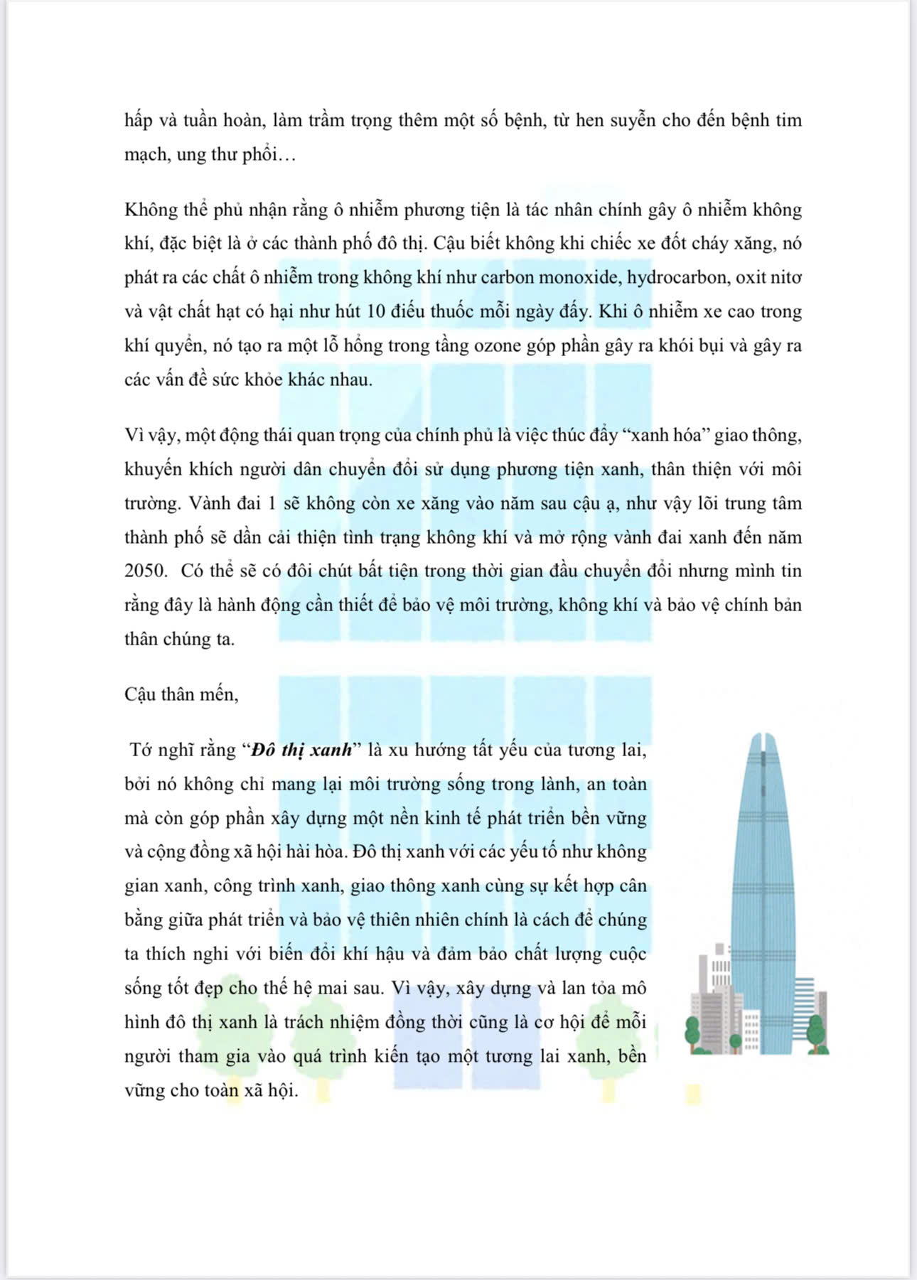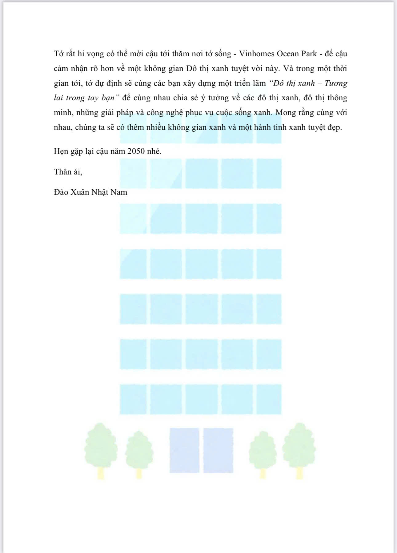 Chia sẻ uớc mơ liên quan đến năng lượng xanh, giáo dục xanh, lối sống xanh về cuộc sống xanh trên Trái đất vào năm 2050.
