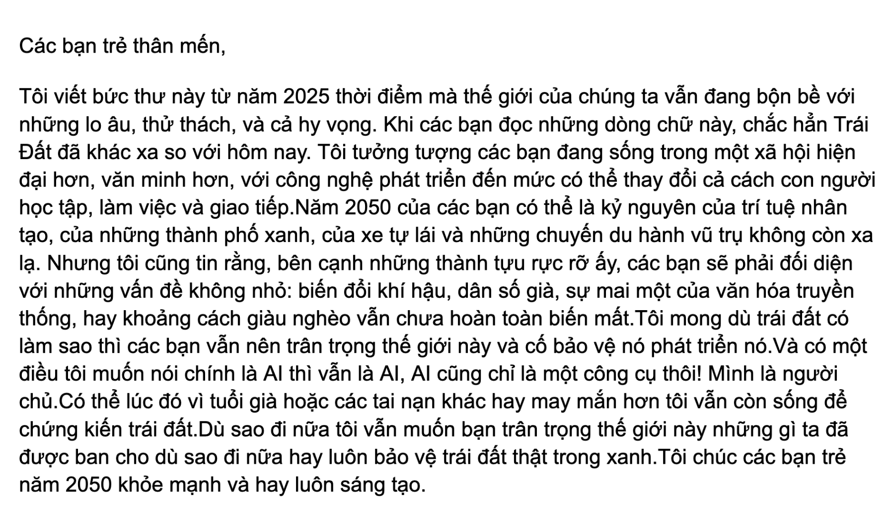 Chia sẻ uớc mơ liên quan đến năng lượng xanh, giáo dục xanh, lối sống xanh về cuộc sống xanh trên Trái đất vào năm 2050.