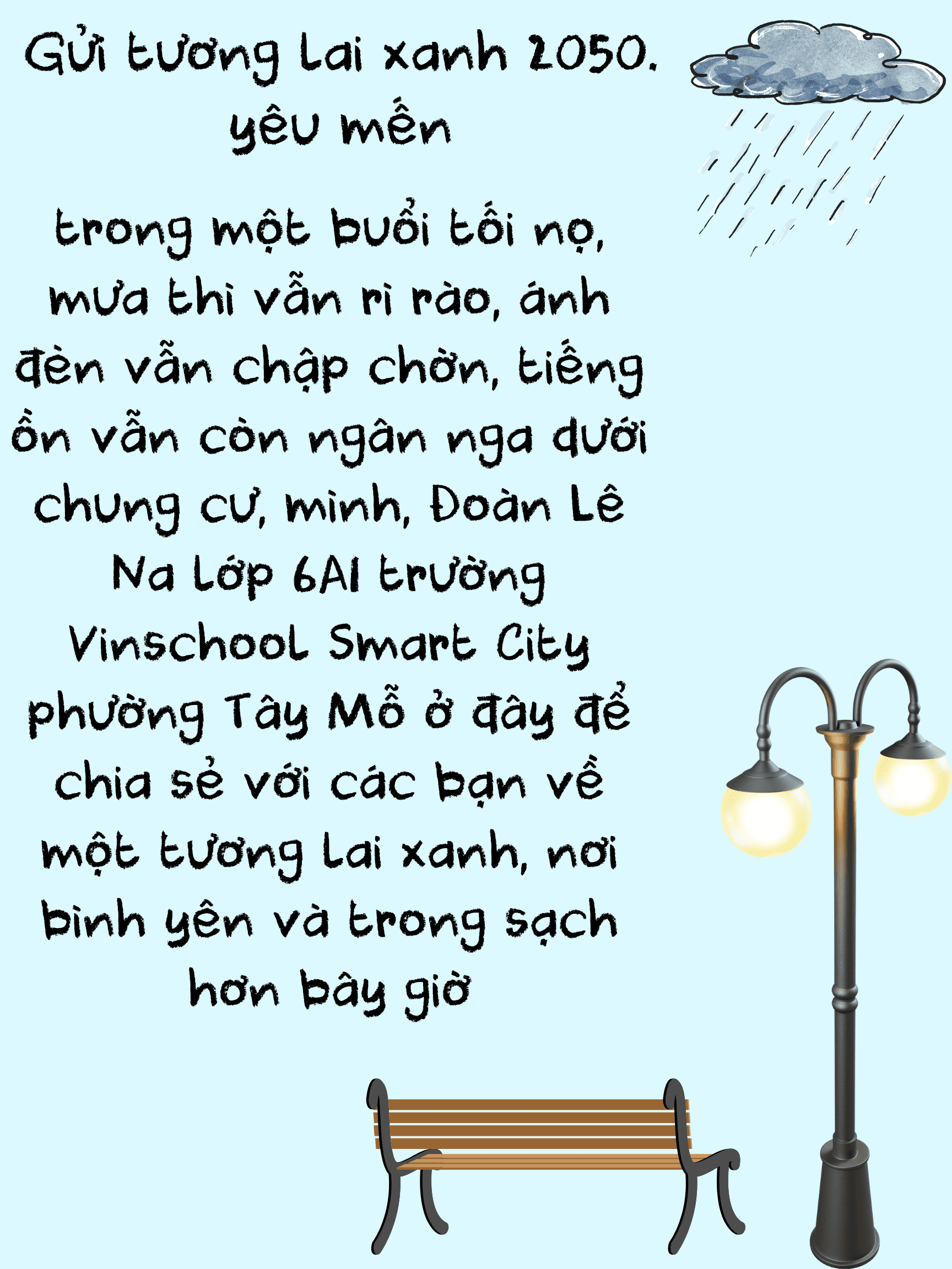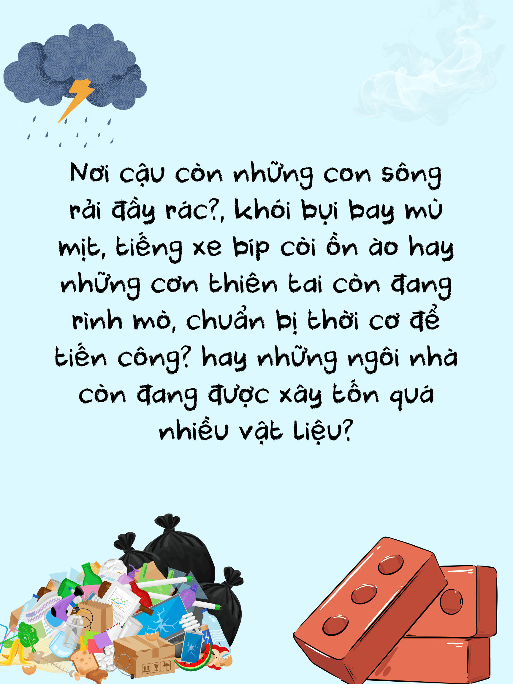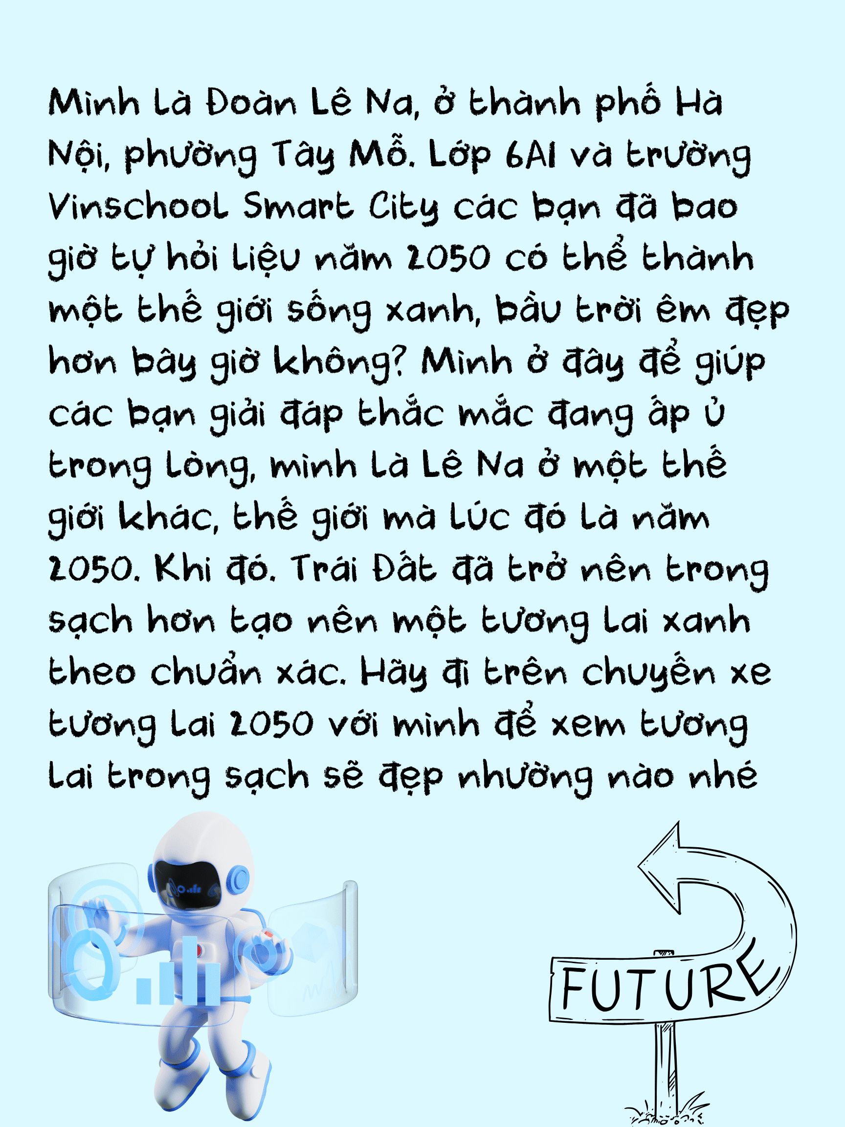 Chia sẻ uớc mơ liên quan đến năng lượng xanh, giáo dục xanh, lối sống xanh về cuộc sống xanh trên Trái đất vào năm 2050.