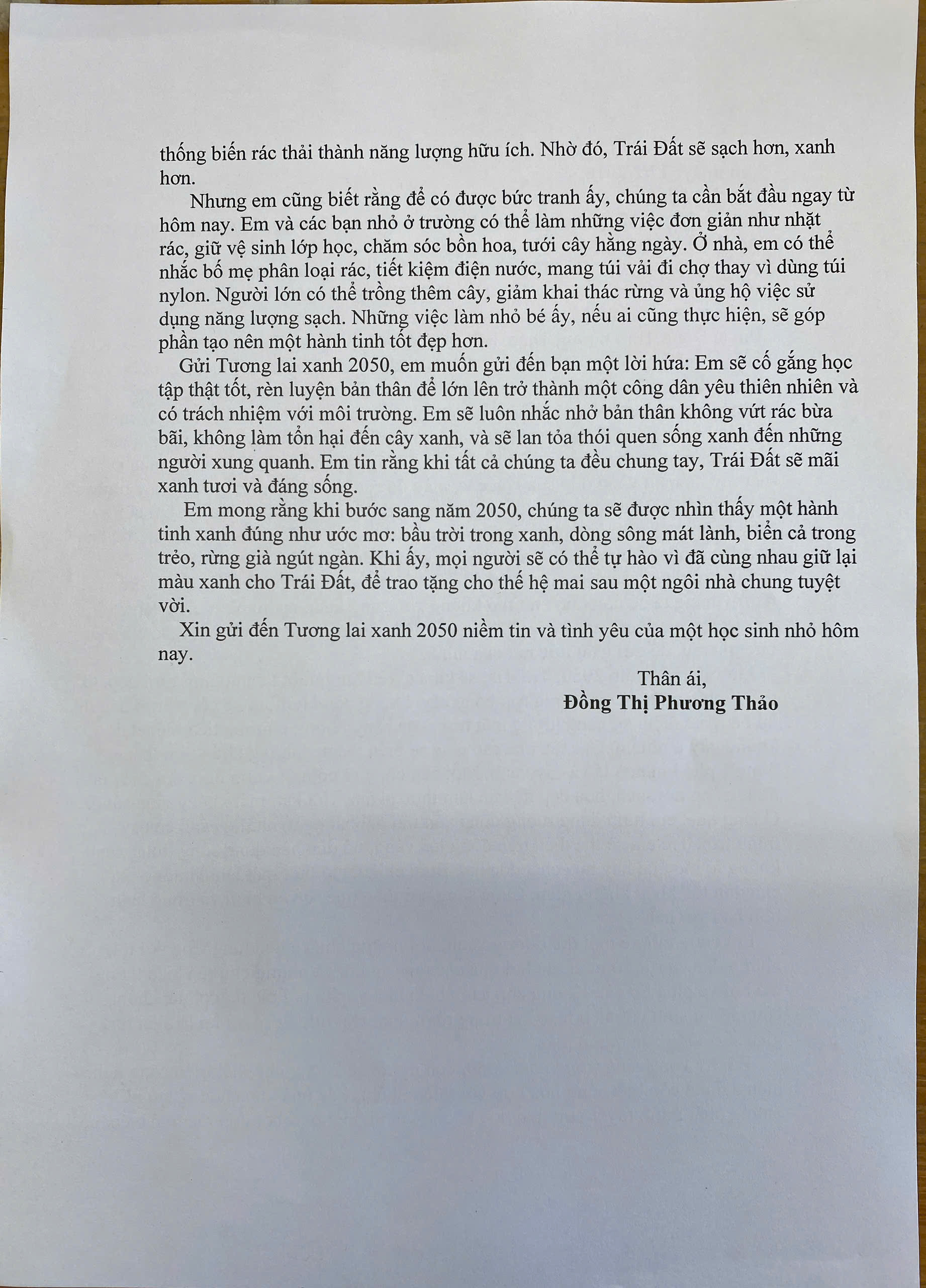 Chia sẻ uớc mơ liên quan đến năng lượng xanh, giáo dục xanh, lối sống xanh về cuộc sống xanh trên Trái đất vào năm 2050.