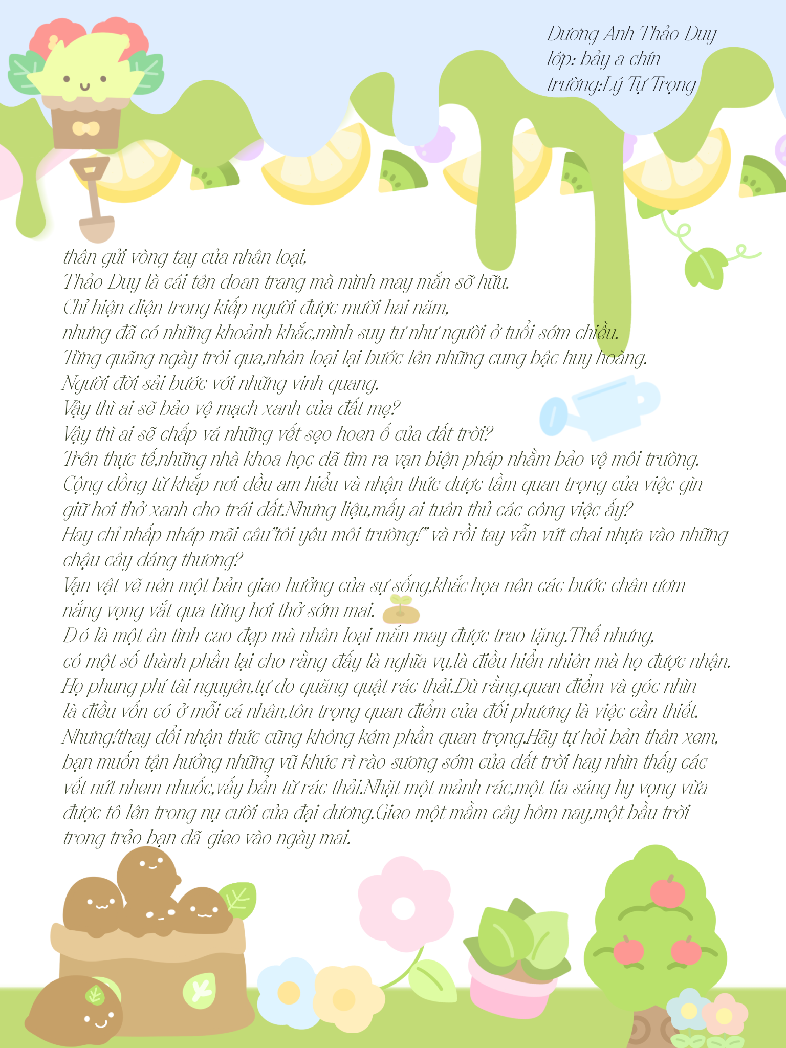 Chia sẻ uớc mơ liên quan đến năng lượng xanh, giáo dục xanh, lối sống xanh về cuộc sống xanh trên Trái đất vào năm 2050.