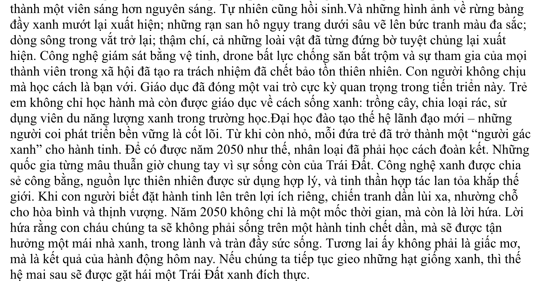 Chia sẻ uớc mơ liên quan đến năng lượng xanh, giáo dục xanh, lối sống xanh về cuộc sống xanh trên Trái đất vào năm 2050.
