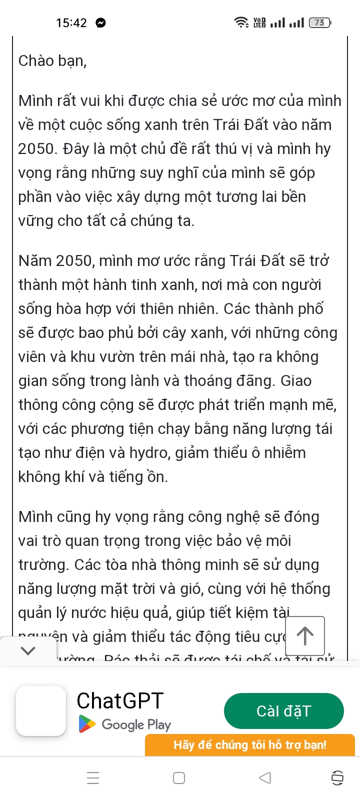 Chia sẻ uớc mơ liên quan đến năng lượng xanh, giáo dục xanh, lối sống xanh về cuộc sống xanh trên Trái đất vào năm 2050.
