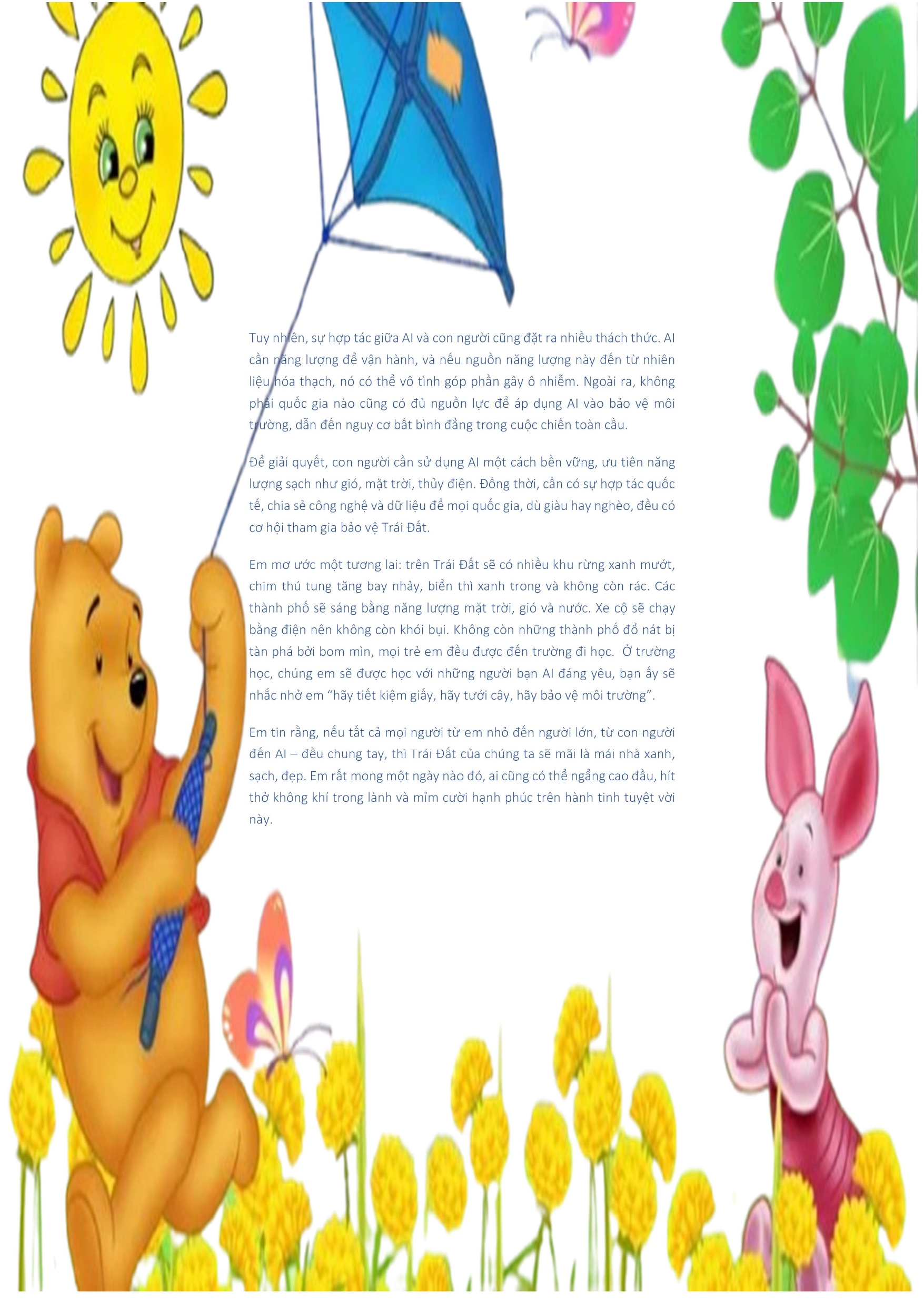 Chia sẻ uớc mơ liên quan đến năng lượng xanh, giáo dục xanh, lối sống xanh về cuộc sống xanh trên Trái đất vào năm 2050.