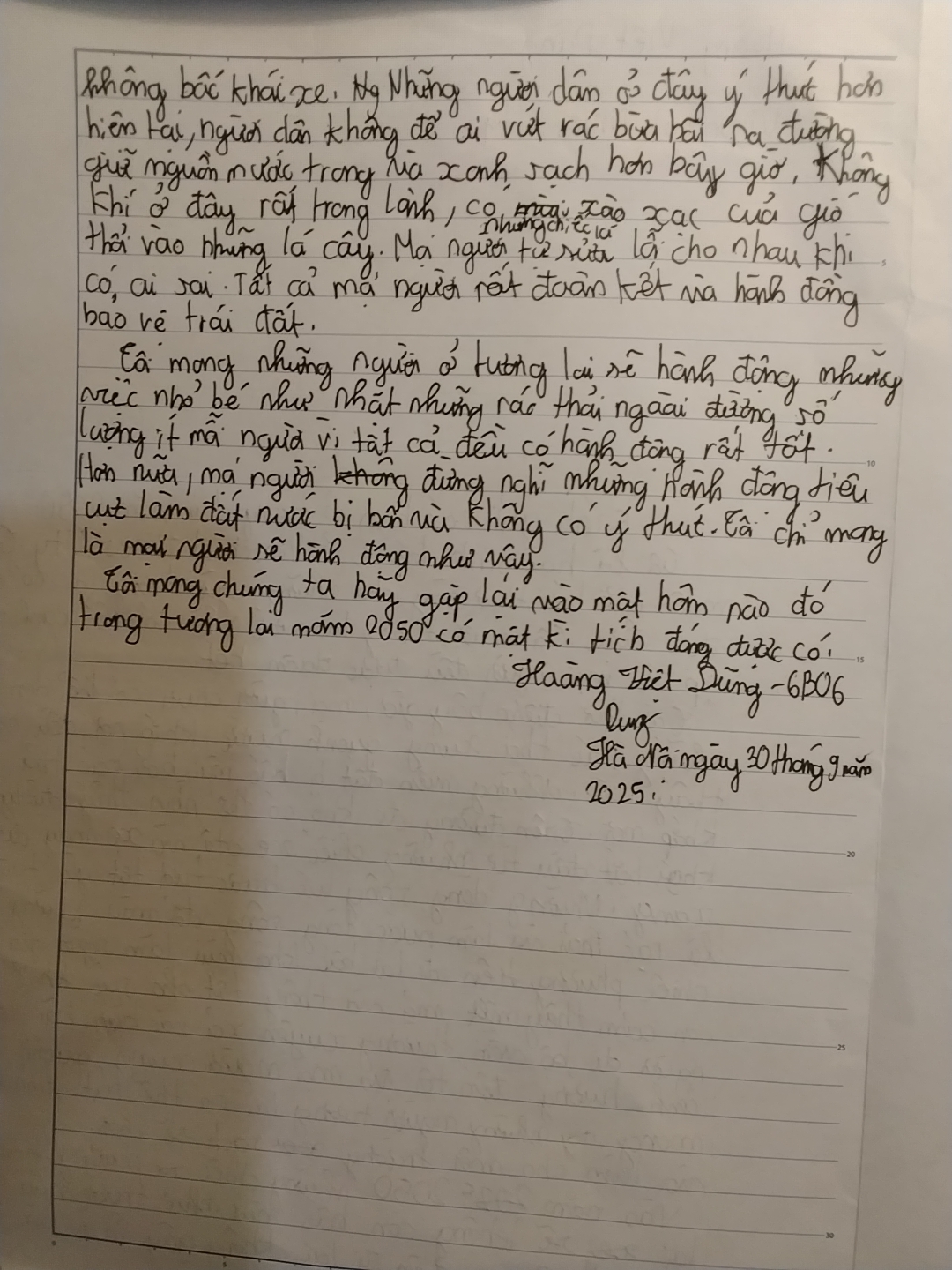 Chia sẻ uớc mơ liên quan đến năng lượng xanh, giáo dục xanh, lối sống xanh về cuộc sống xanh trên Trái đất vào năm 2050.
