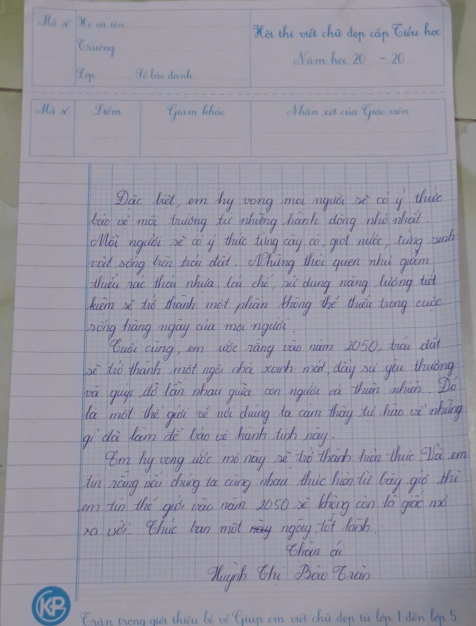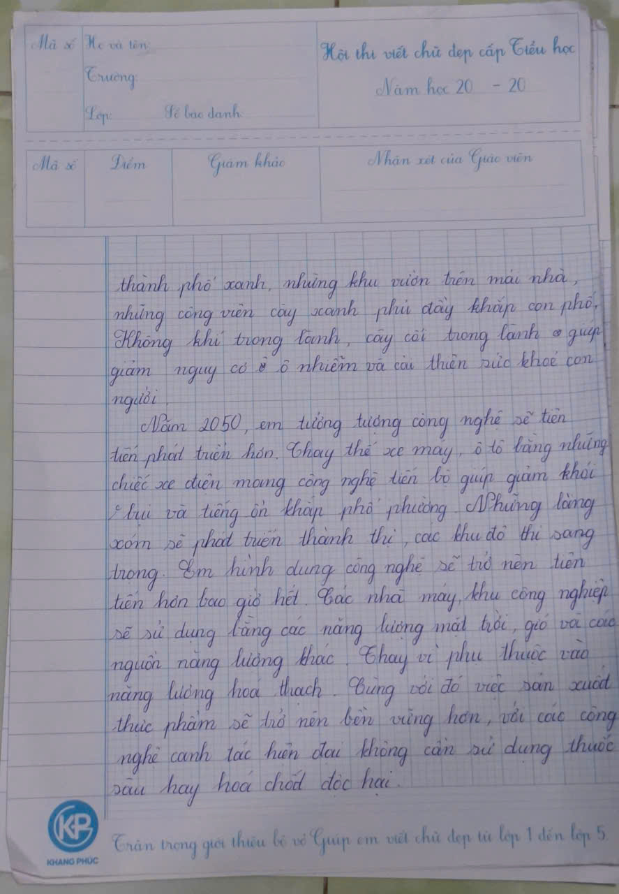 Chia sẻ uớc mơ liên quan đến năng lượng xanh, giáo dục xanh, lối sống xanh về cuộc sống xanh trên Trái đất vào năm 2050.