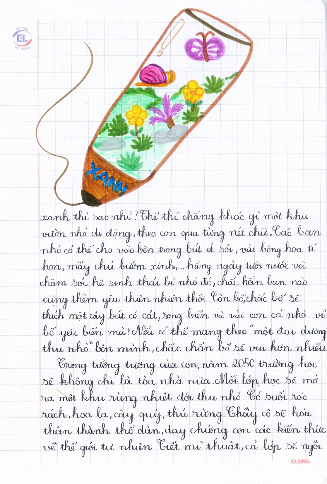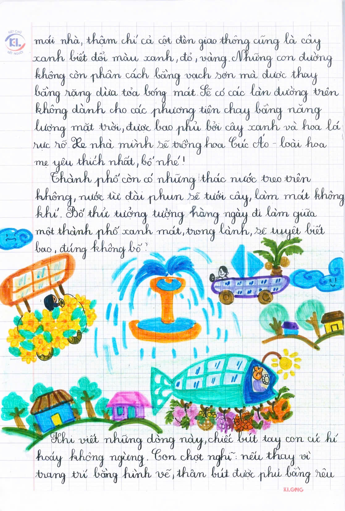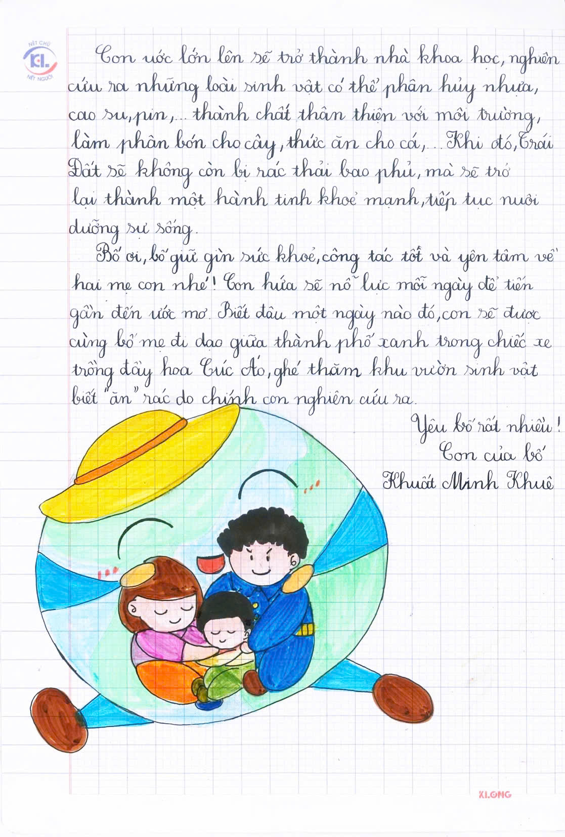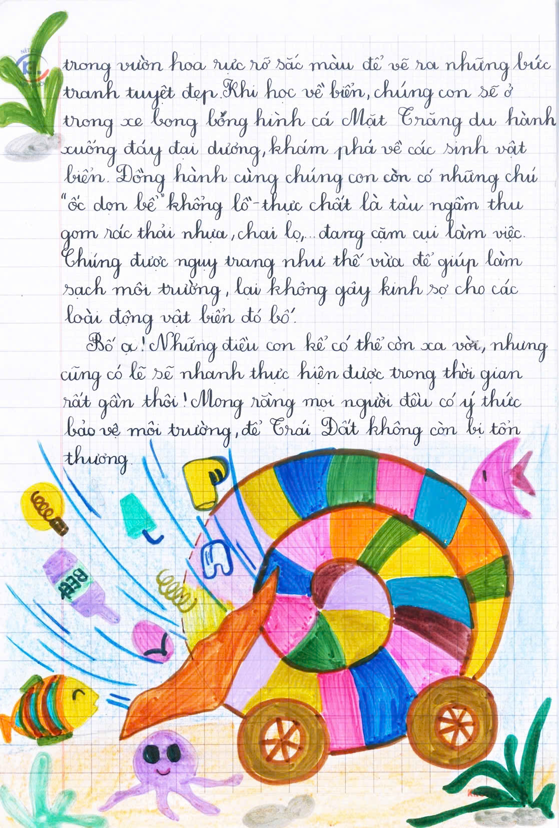 Nhìn thấy bố mẹ vất vả làm việc giữa thời tiết nắng nóng, con thương bố mẹ nhiều lắm! Con mong rằng môi trường sẽ xanh hơn, nhiều hoa và không còn rác thải, để không chỉ bố mẹ , mà tất cả mọi người đều được sống, học tập và làm việc trong bầu không khí trong lành, dễ chịu.