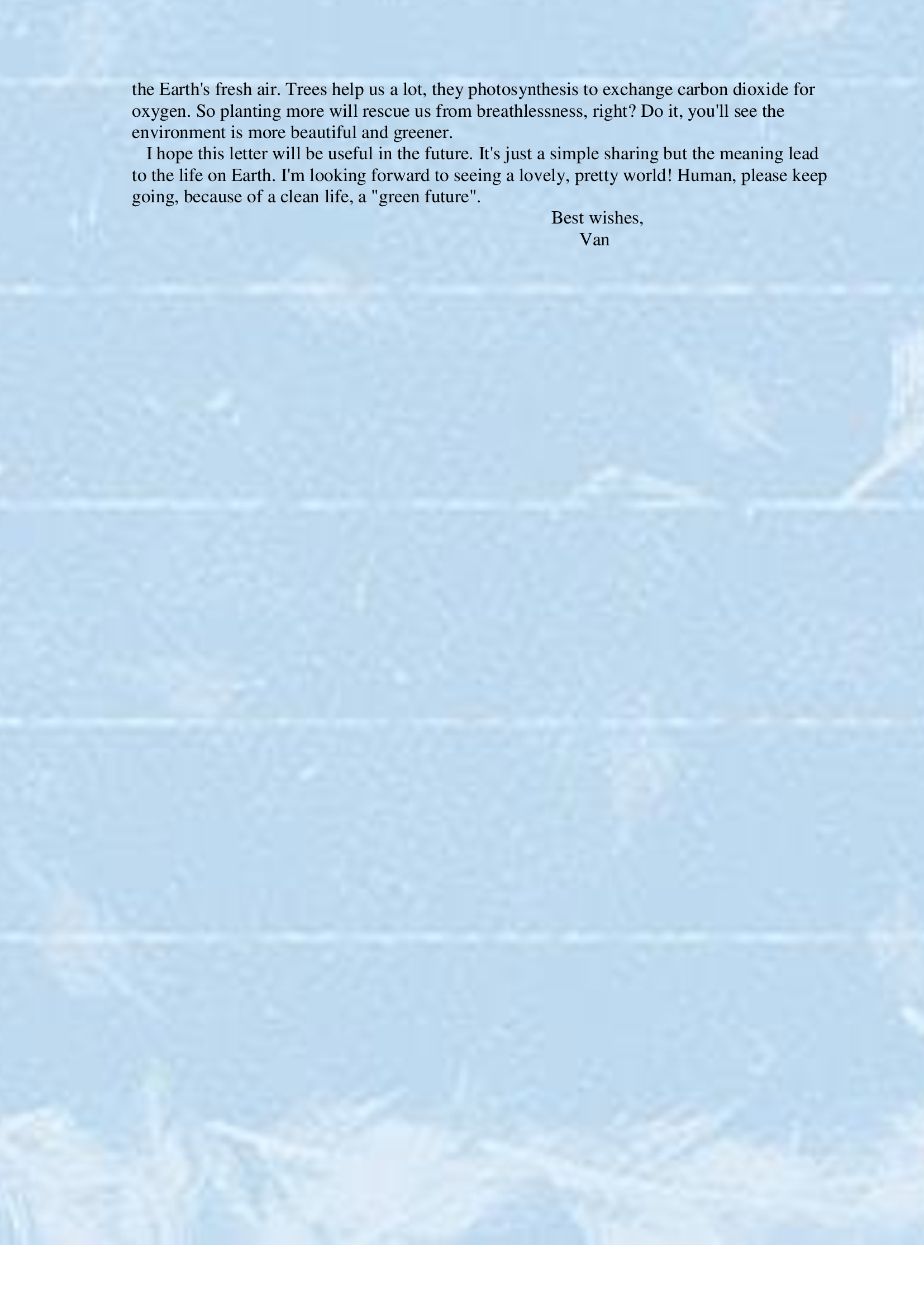 Chia sẻ uớc mơ liên quan đến năng lượng xanh, giáo dục xanh, lối sống xanh về cuộc sống xanh trên Trái đất vào năm 2050.