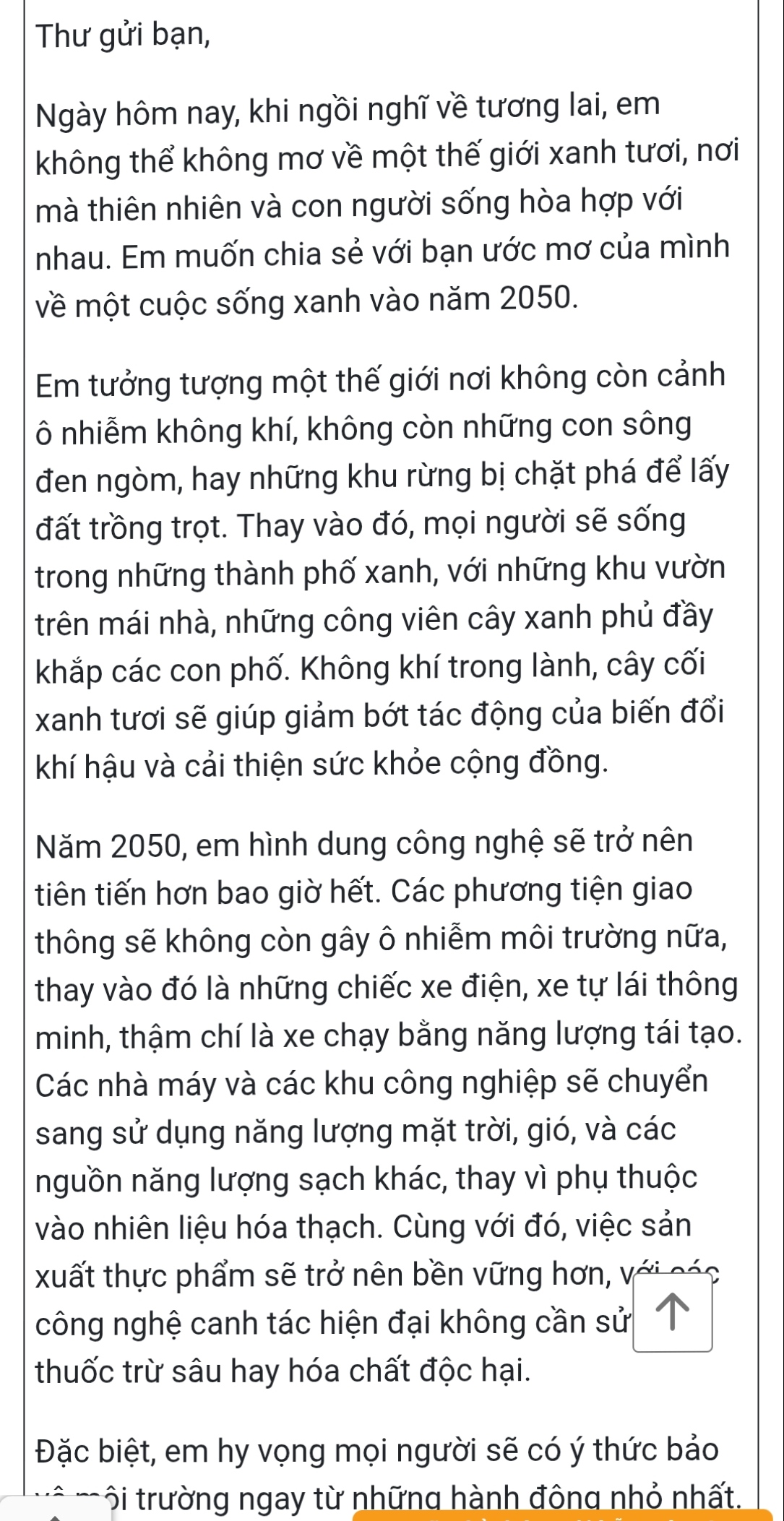 Chia sẻ uớc mơ liên quan đến năng lượng xanh, giáo dục xanh, lối sống xanh về cuộc sống xanh trên Trái đất vào năm 2050.