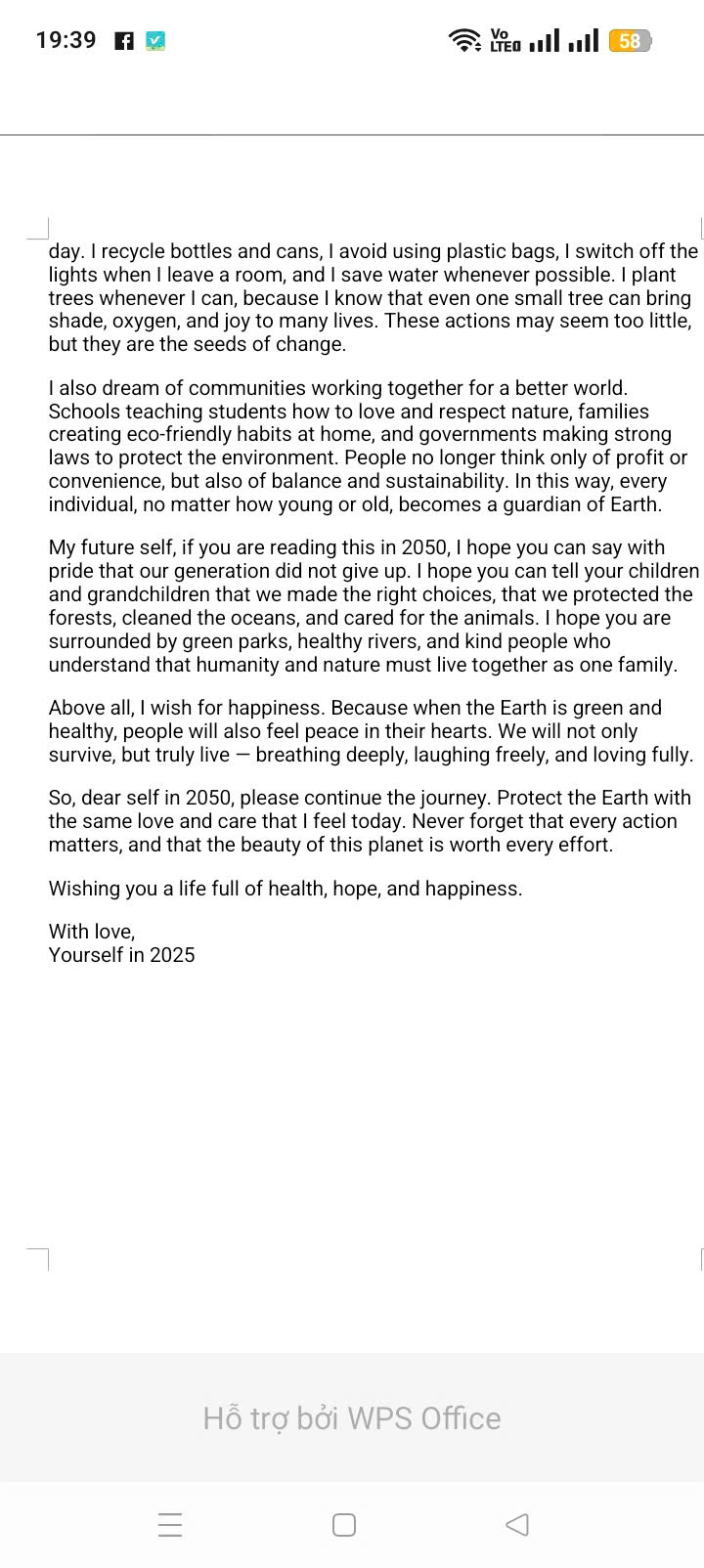 Chia sẻ uớc mơ liên quan đến năng lượng xanh, giáo dục xanh, lối sống xanh về cuộc sống xanh trên Trái đất vào năm 2050.