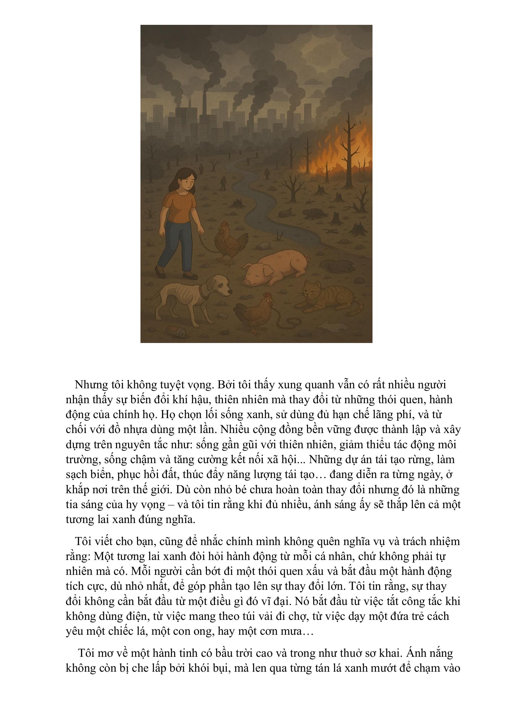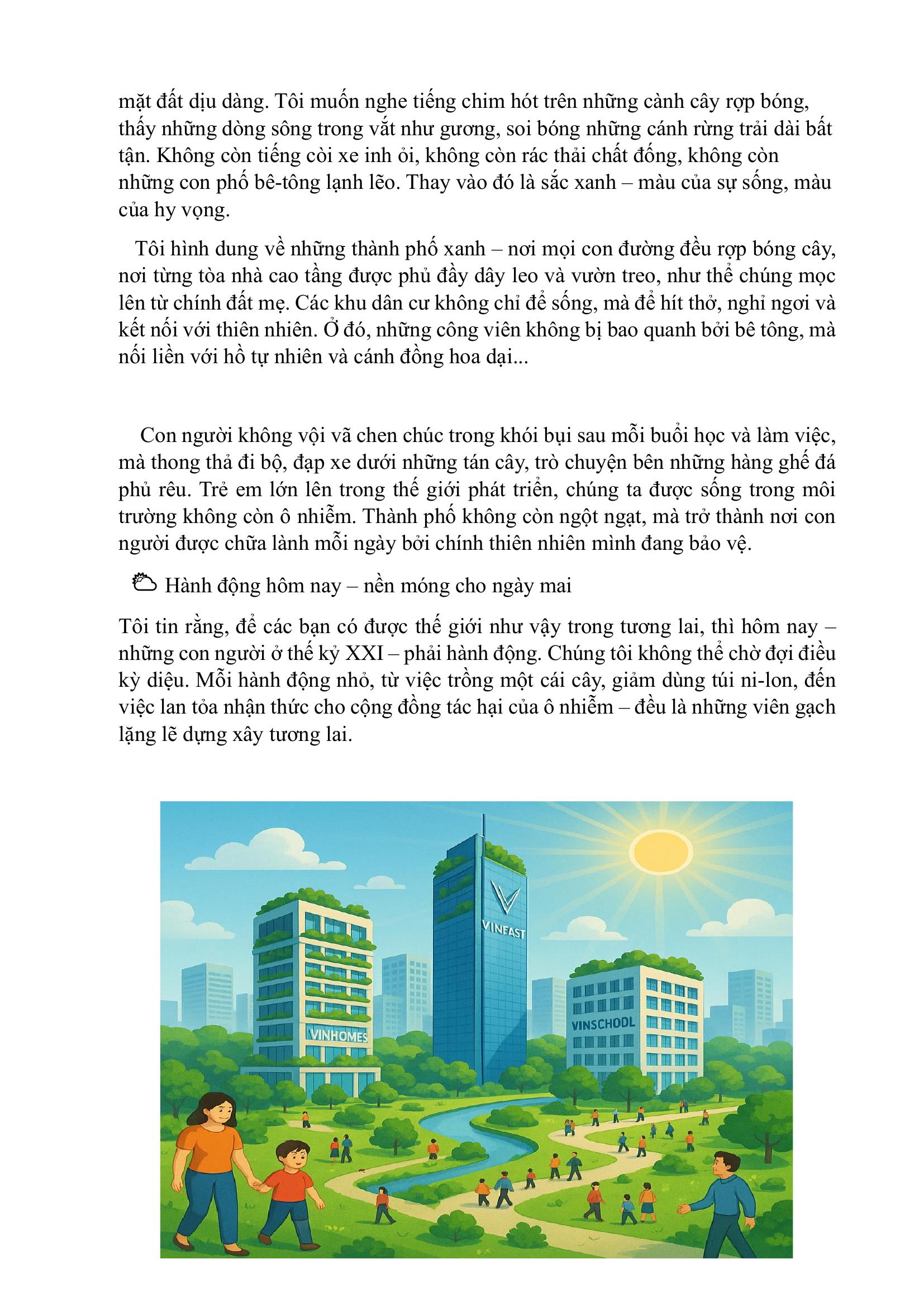 Chia sẻ uớc mơ liên quan đến năng lượng xanh, giáo dục xanh, lối sống xanh về cuộc sống xanh trên Trái đất vào năm 2050.