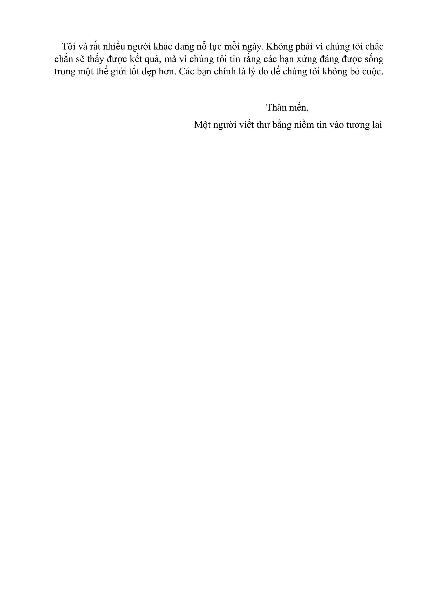 Mỗi thí sinh gửi tác phẩm là thư viết tay hoặc đánh máy dưới dạng văn xuôi, có độ dài không quá 800 từ, sử dụng tiếng Việt hoặc tiếng Anh, trình bày trên khổ giấy A3, kết hợp thể loại thơ và trang trí minh hoạ.