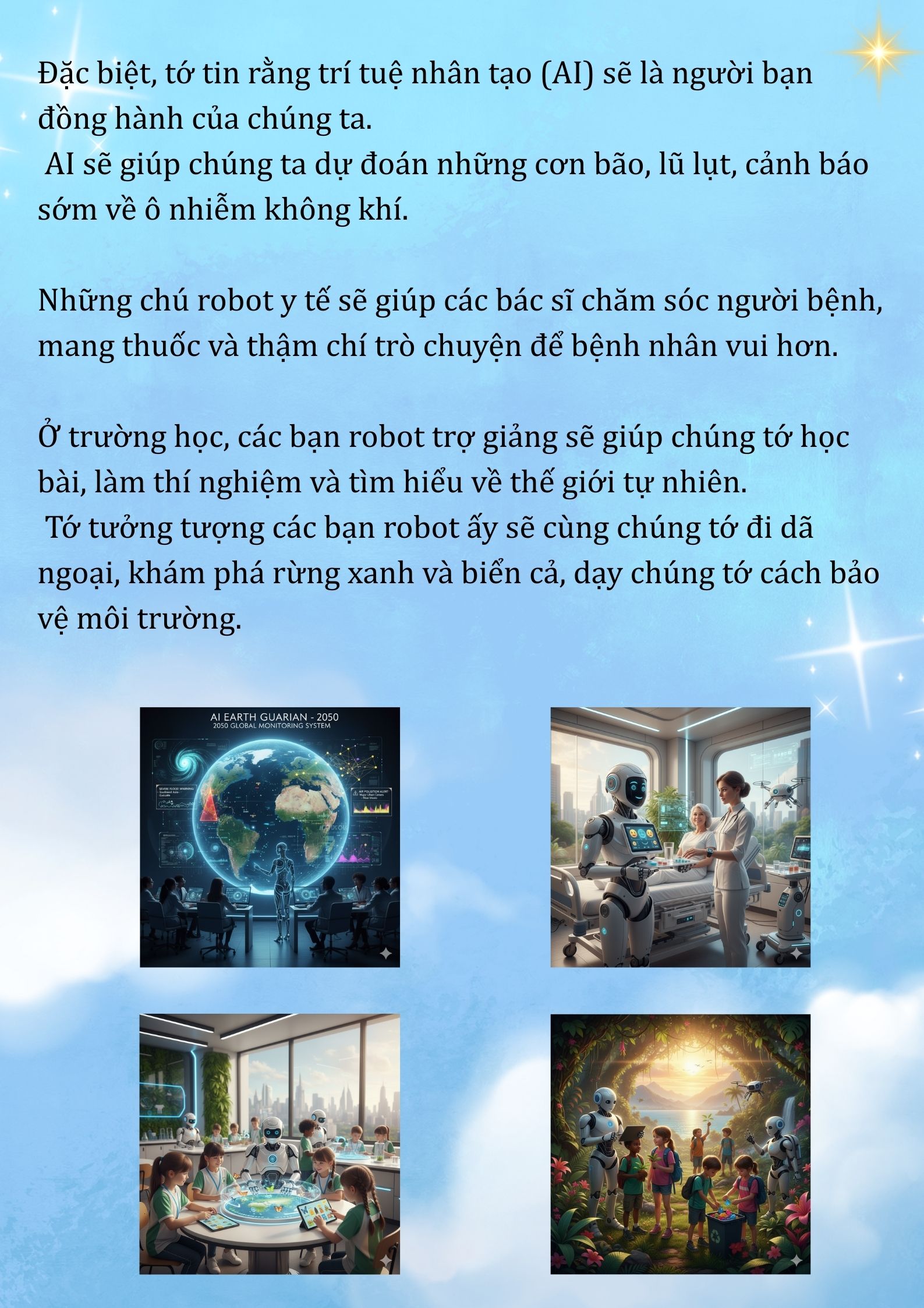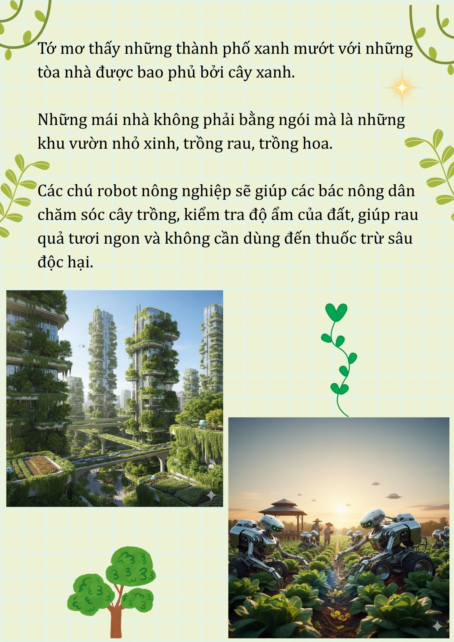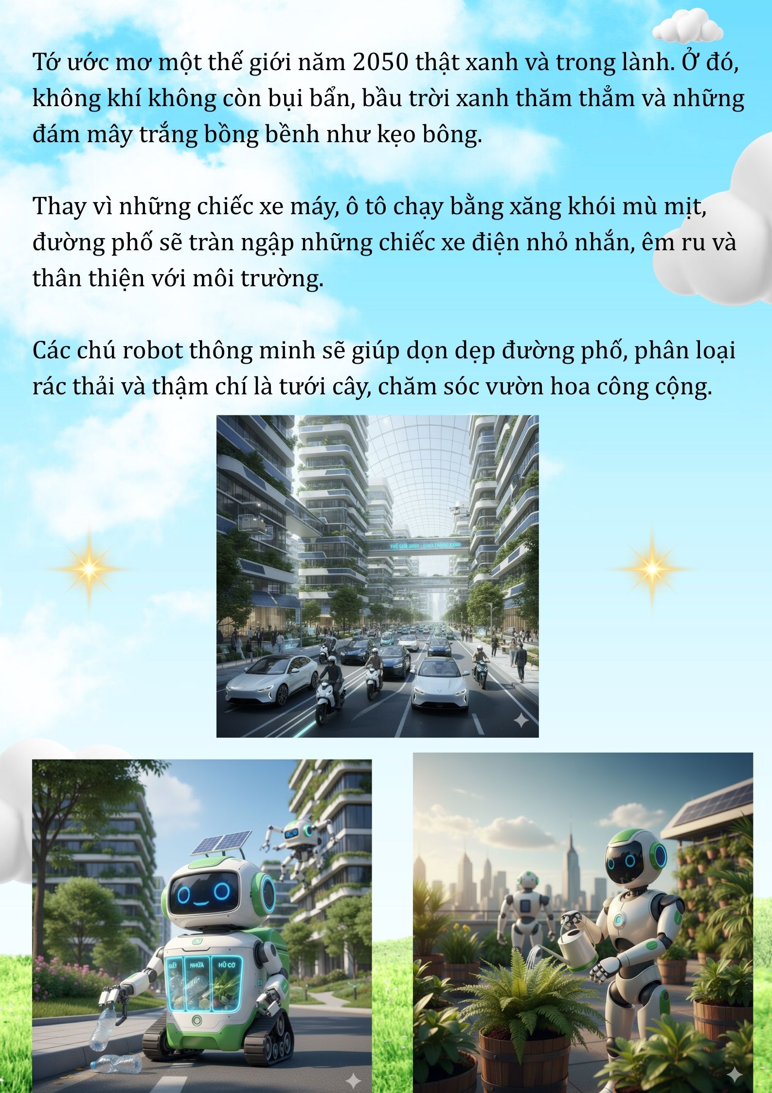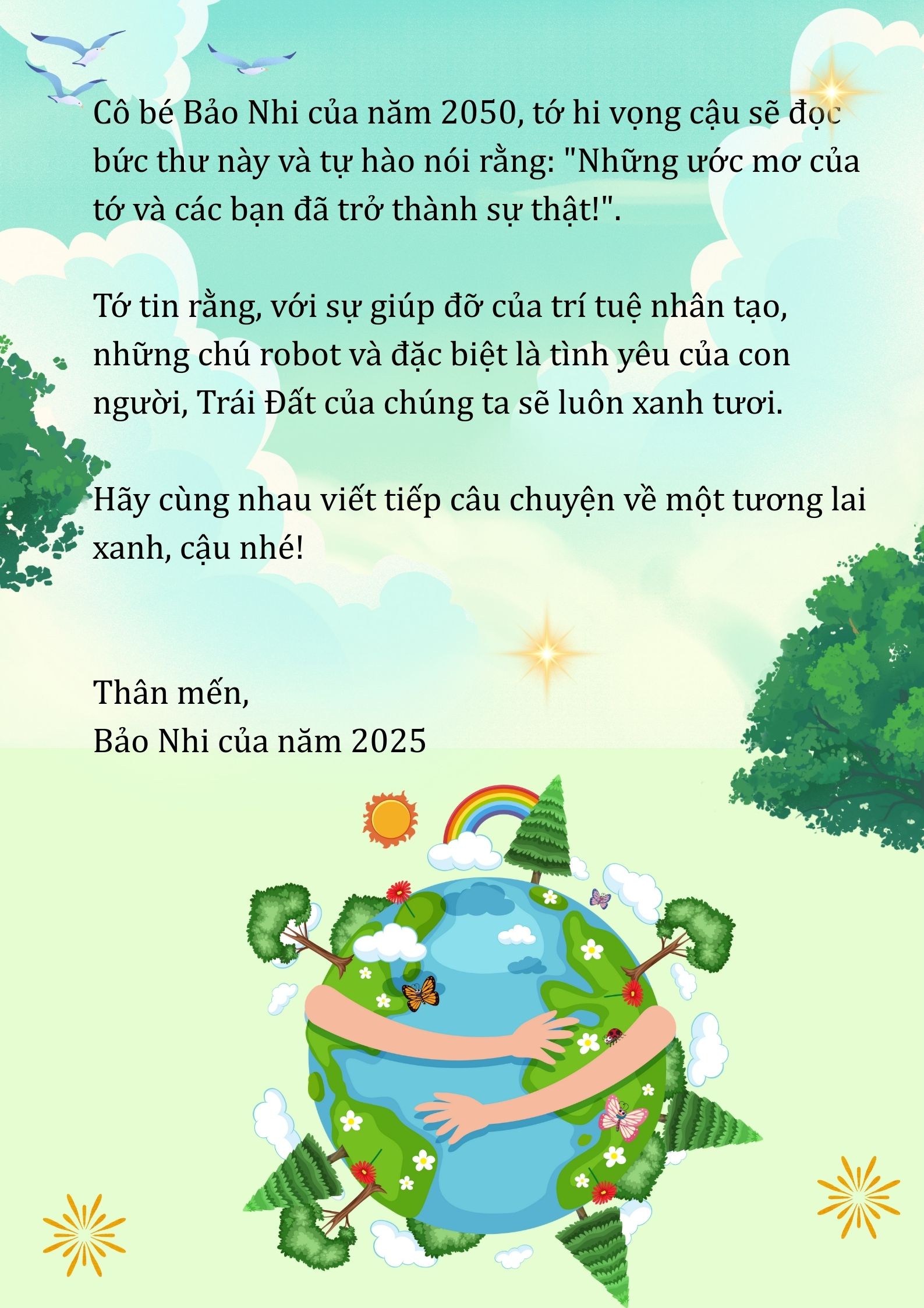 Chia sẻ uớc mơ liên quan đến năng lượng xanh, giáo dục xanh, lối sống xanh về cuộc sống xanh trên Trái đất vào năm 2050.