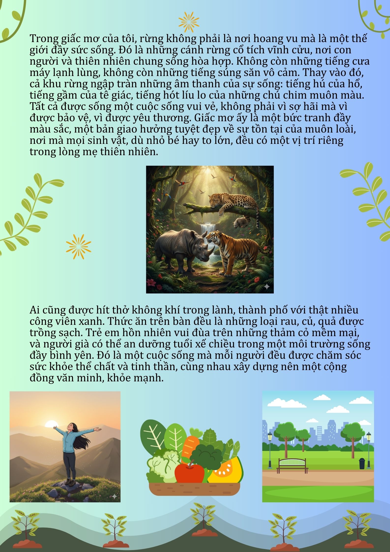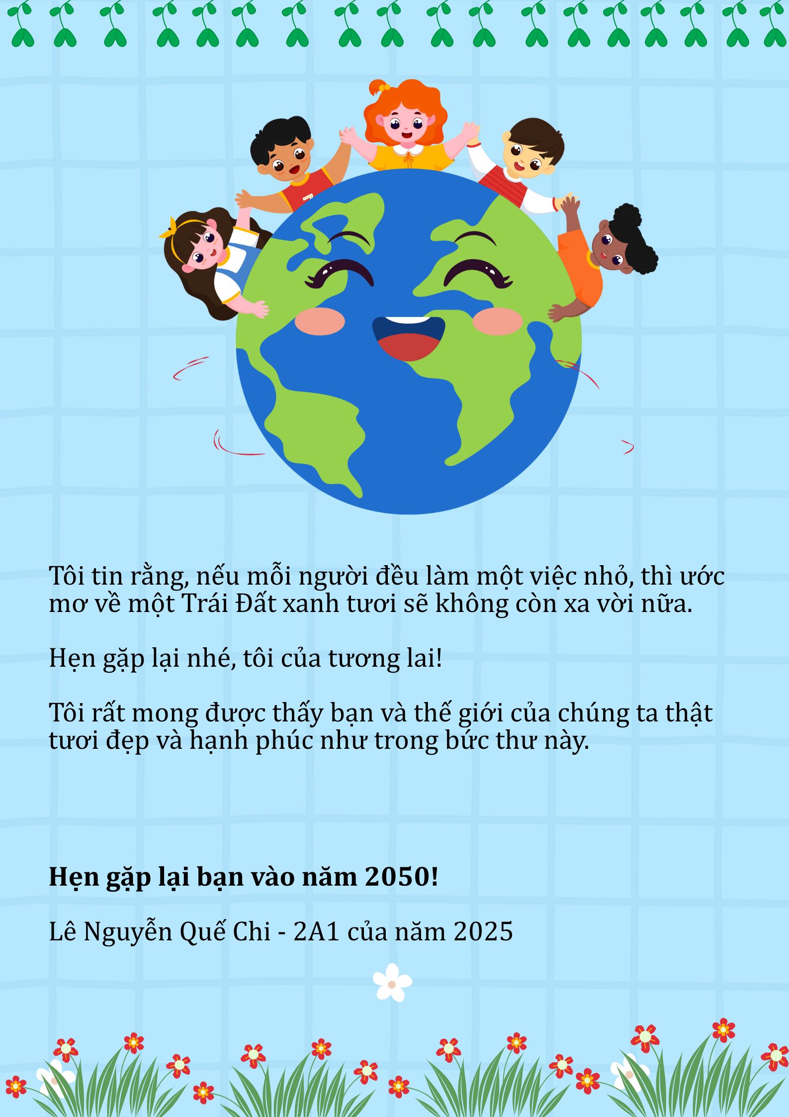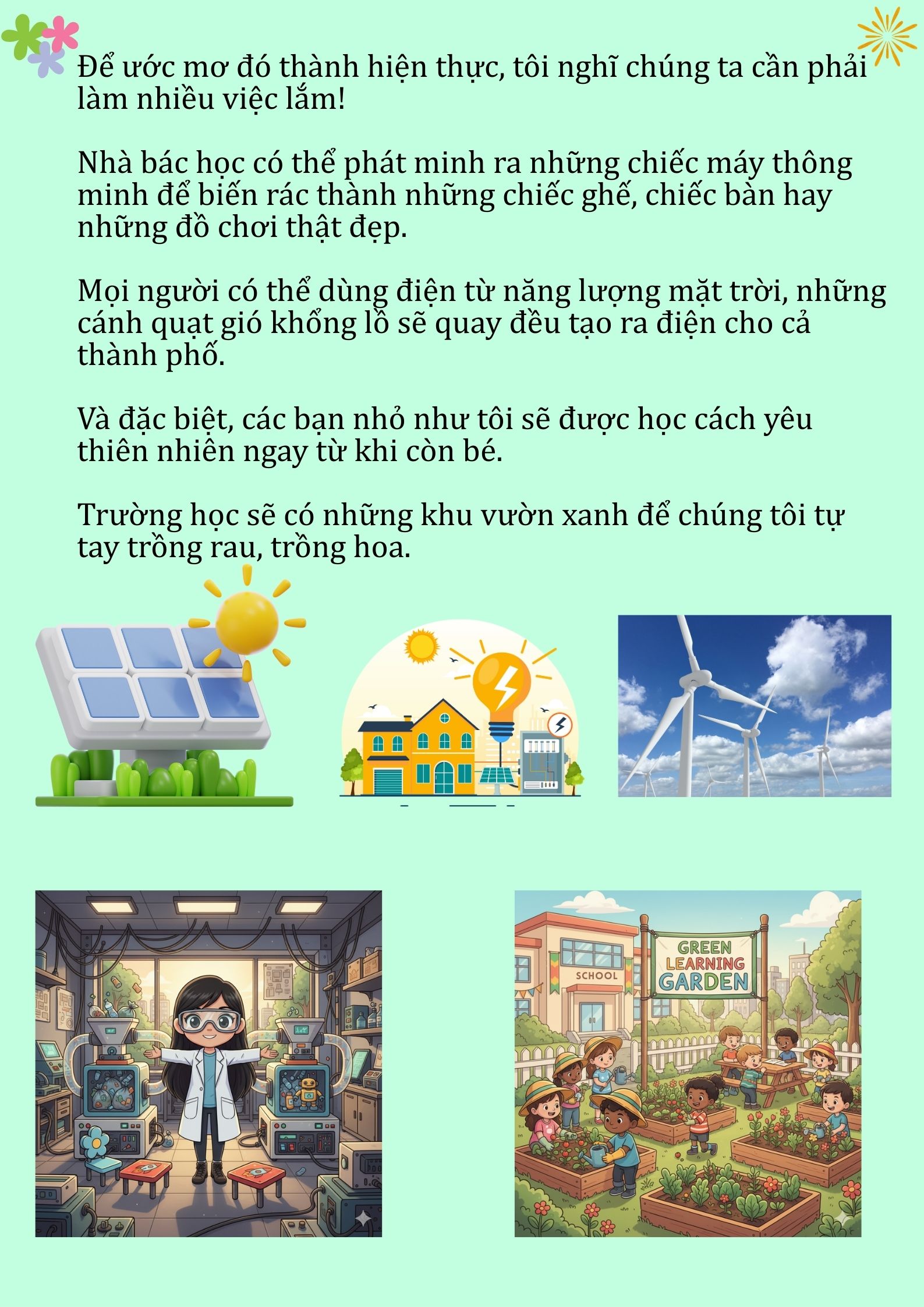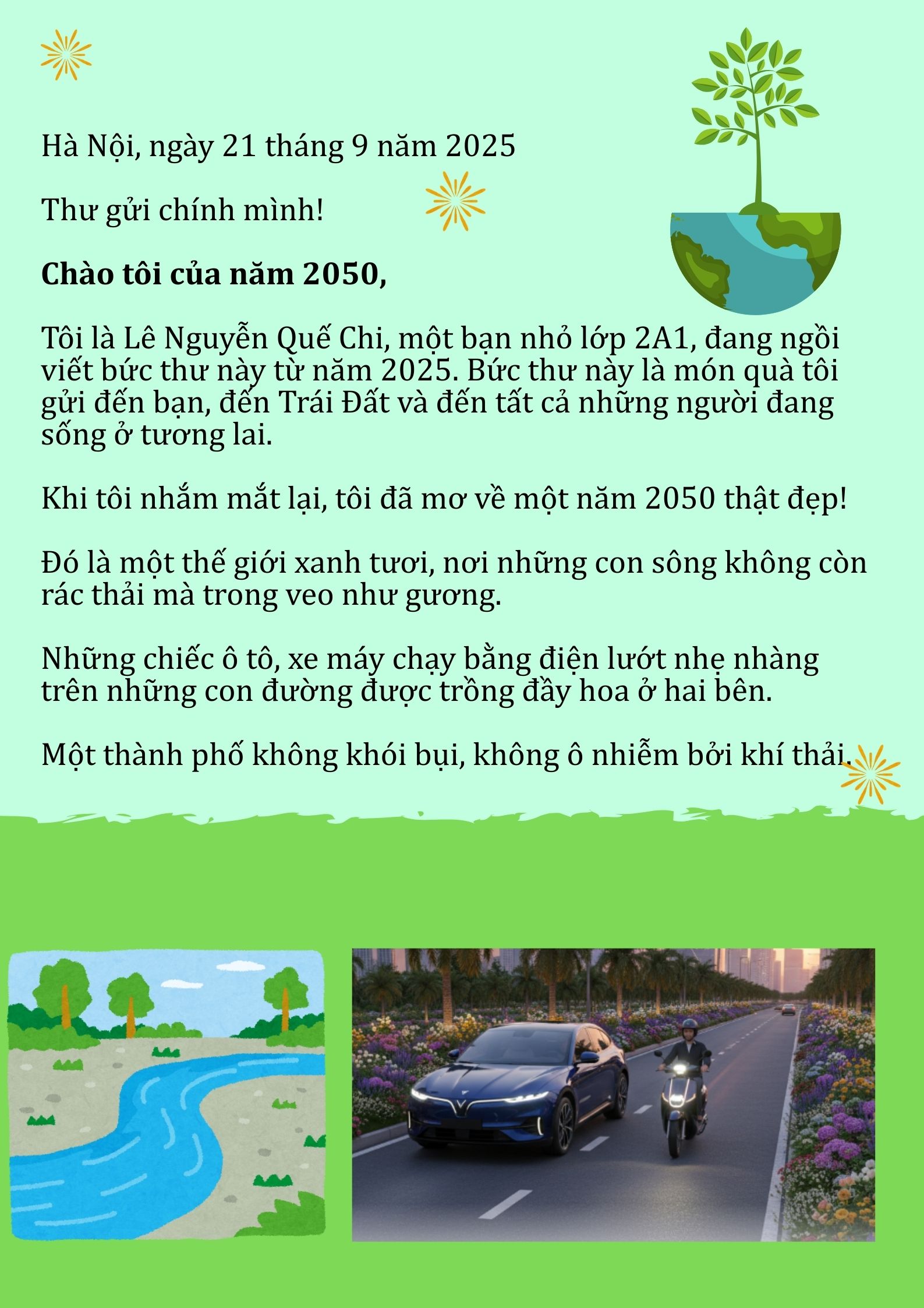 Chia sẻ uớc mơ liên quan đến năng lượng xanh, giáo dục xanh, lối sống xanh về cuộc sống xanh trên Trái đất vào năm 2050.