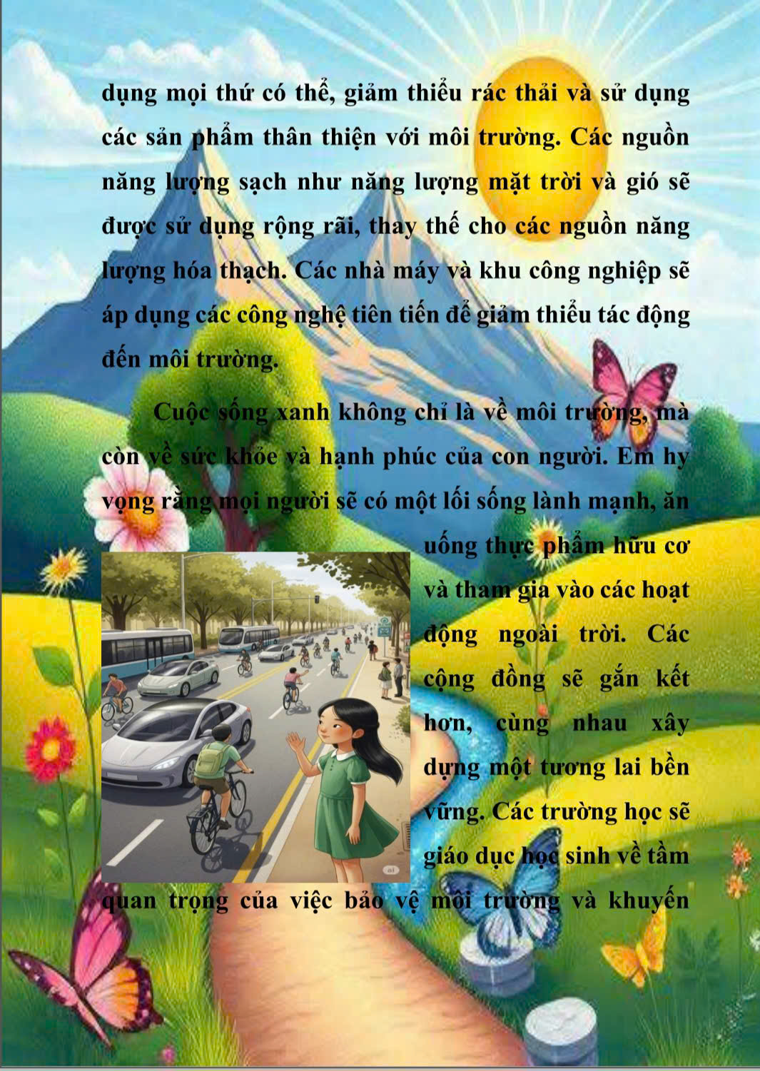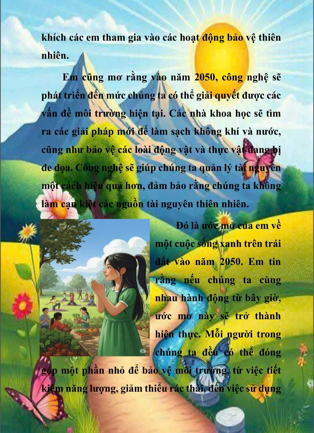 Chia sẻ uớc mơ liên quan đến năng lượng xanh, giáo dục xanh, lối sống xanh về cuộc sống xanh trên Trái đất vào năm 2050.