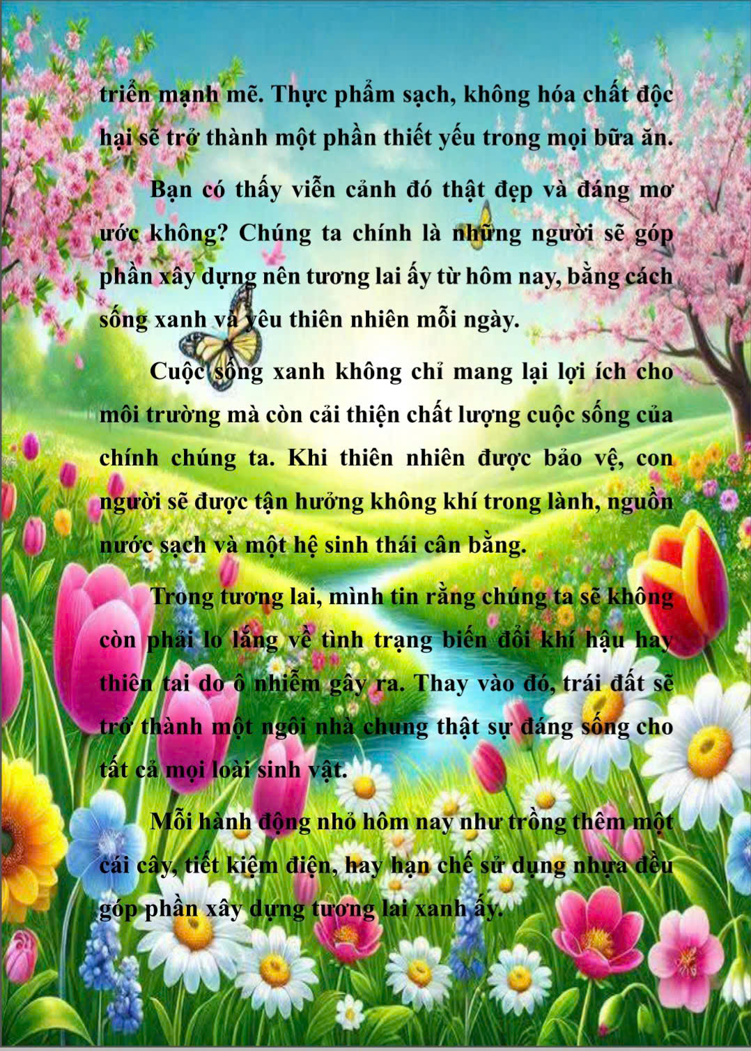 Chia sẻ uớc mơ liên quan đến năng lượng xanh, giáo dục xanh, lối sống xanh về cuộc sống xanh trên Trái đất vào năm 2050.