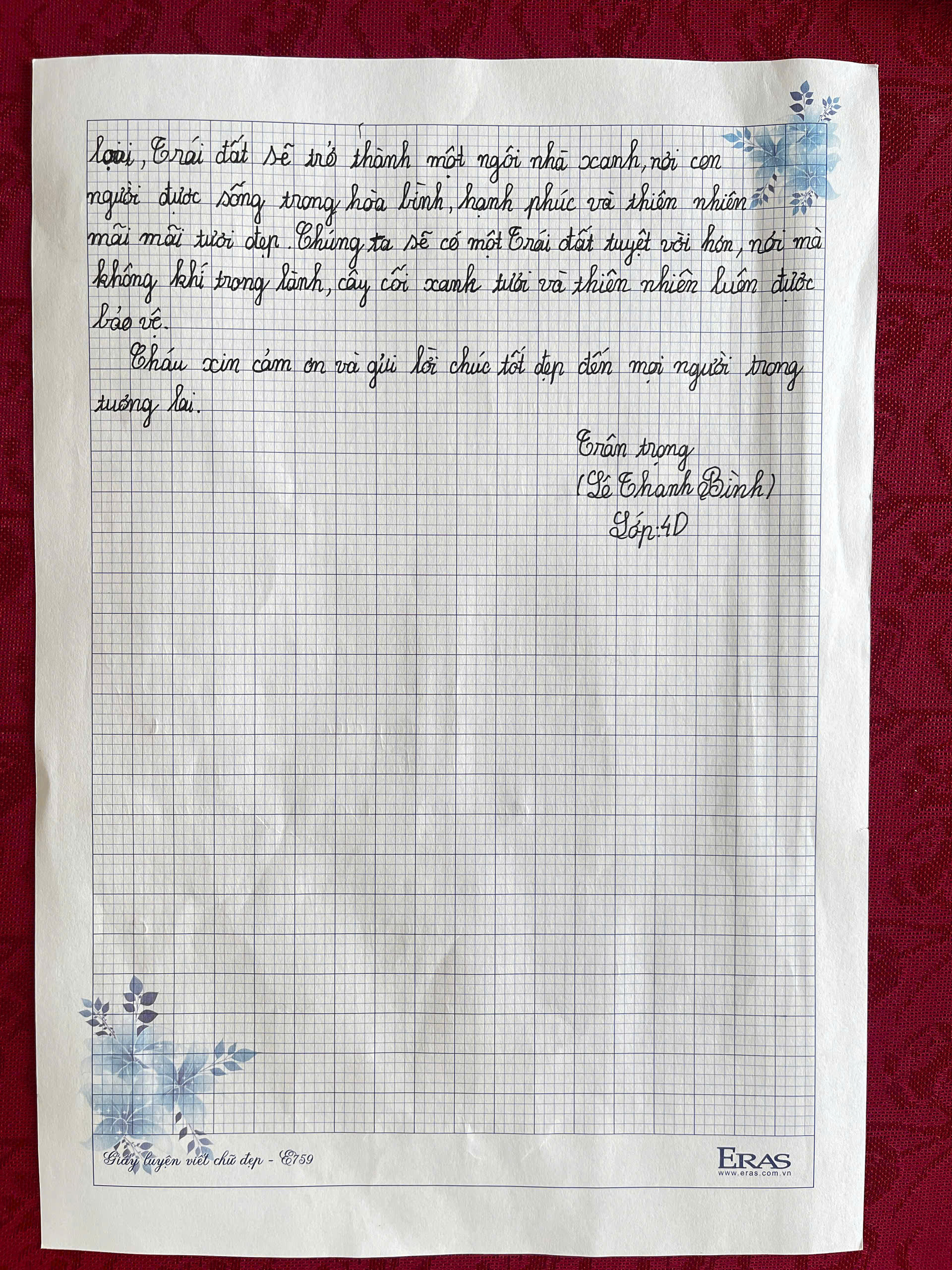 Chia sẻ uớc mơ liên quan đến năng lượng xanh, giáo dục xanh, lối sống xanh về cuộc sống xanh trên Trái đất vào năm 2050.