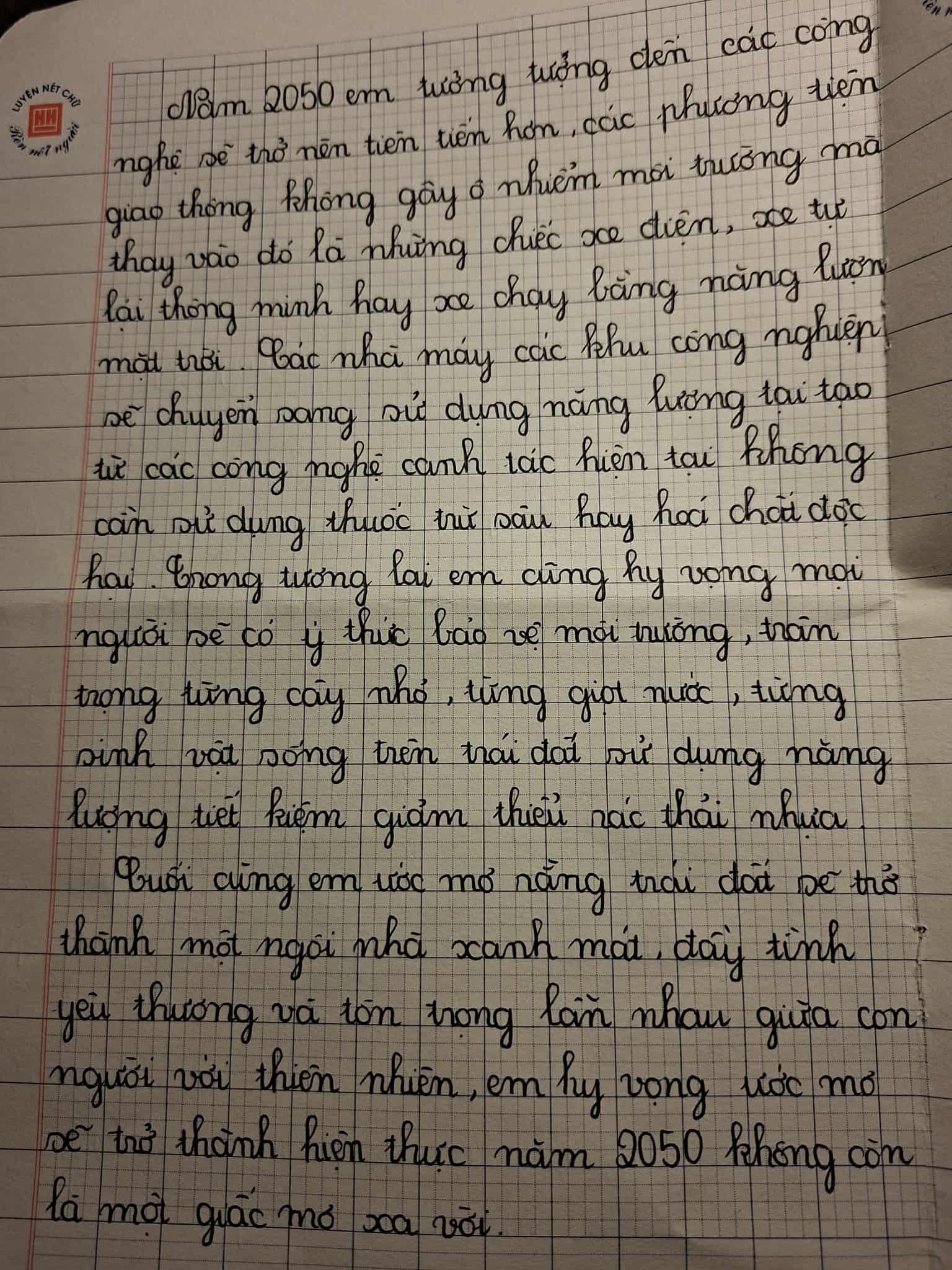 Chia sẻ uớc mơ liên quan đến năng lượng xanh, giáo dục xanh, lối sống xanh về cuộc sống xanh trên Trái đất vào năm 2050.