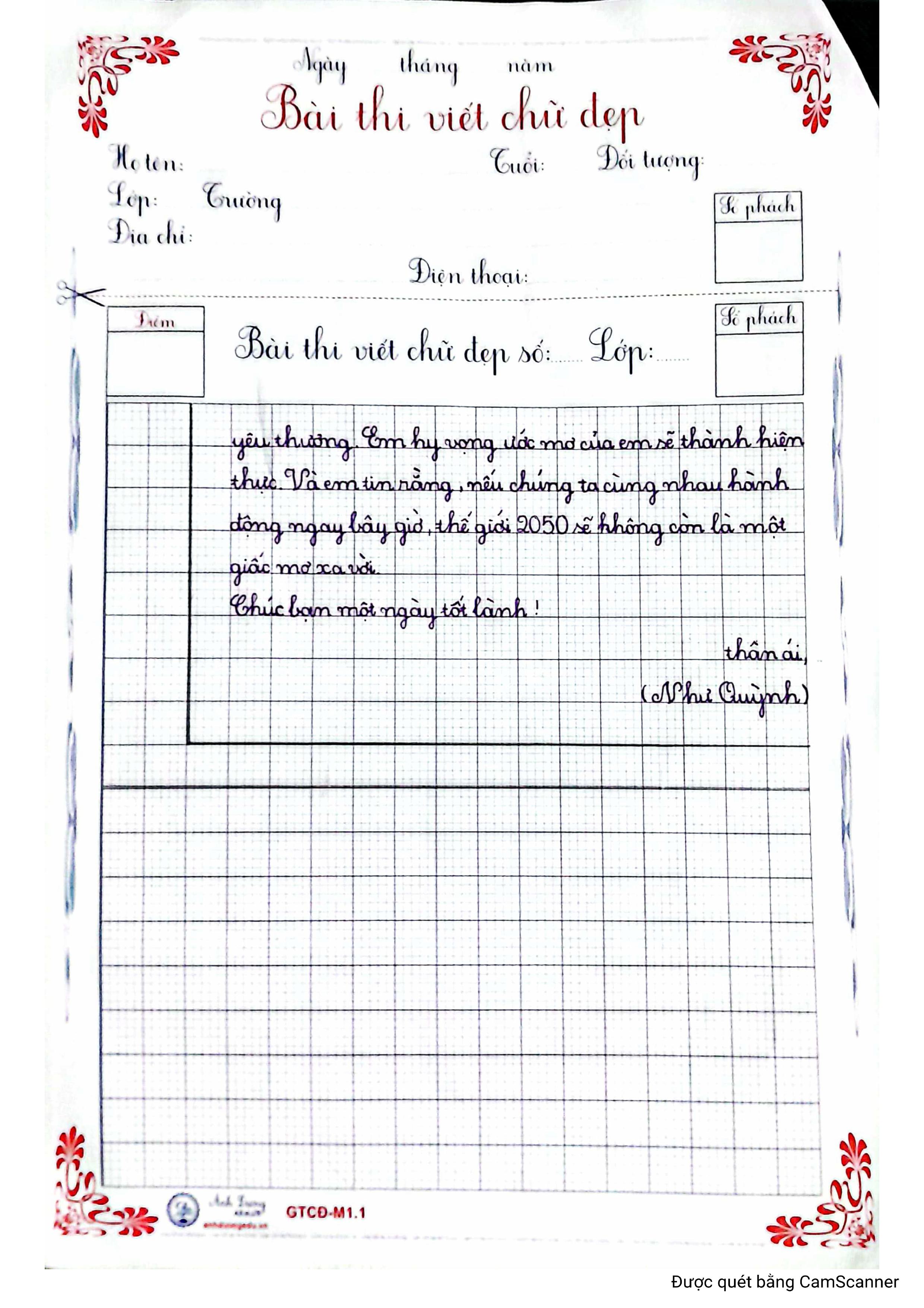 Mỗi thí sinh gửi tác phẩm là thư viết tay hoặc đánh máy dưới dạng văn xuôi, có độ dài không quá 800 từ, sử dụng tiếng Việt hoặc tiếng Anh, trình bày trên khổ giấy A3, kết hợp thể loại thơ và trang trí minh hoạ.