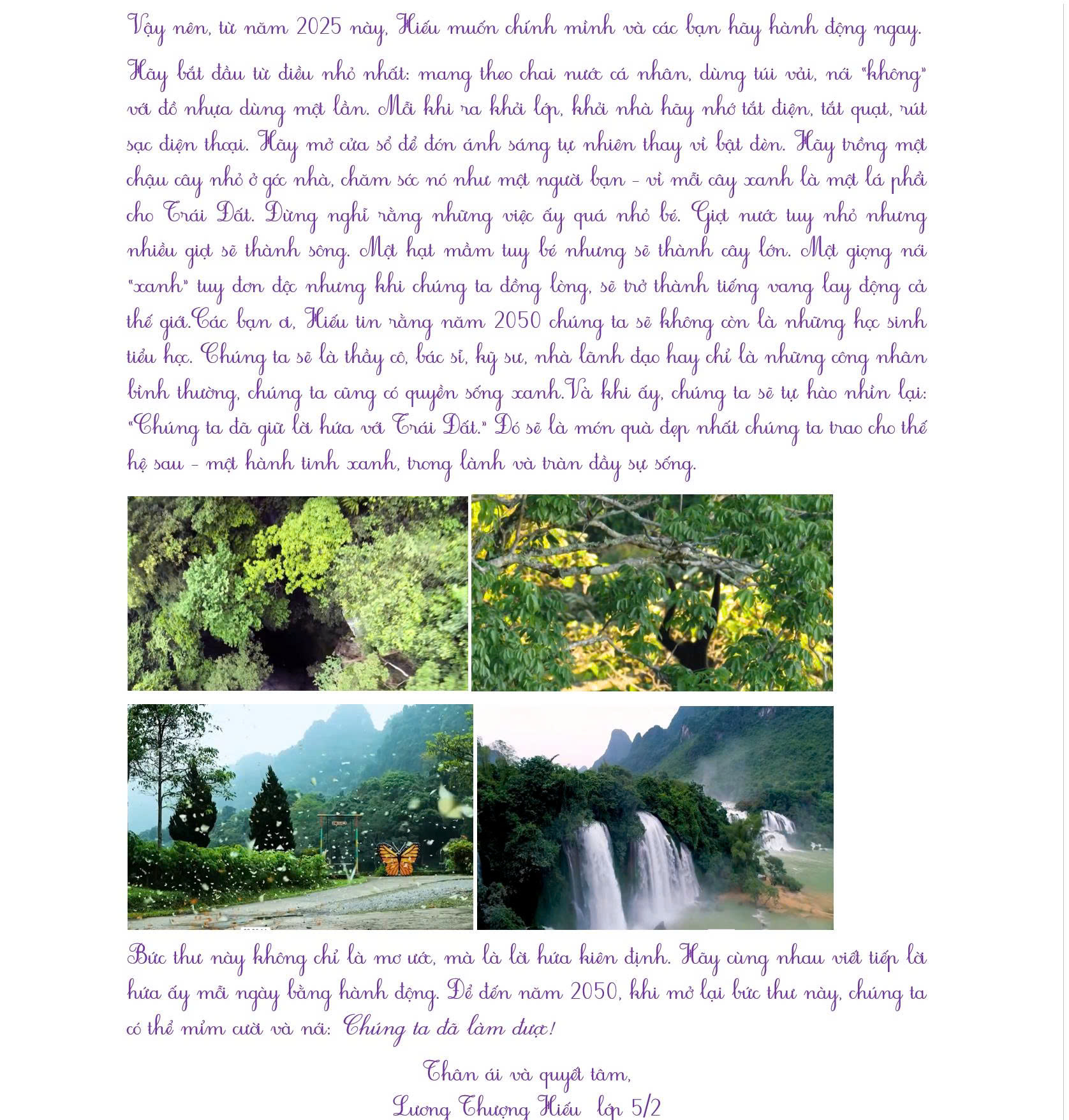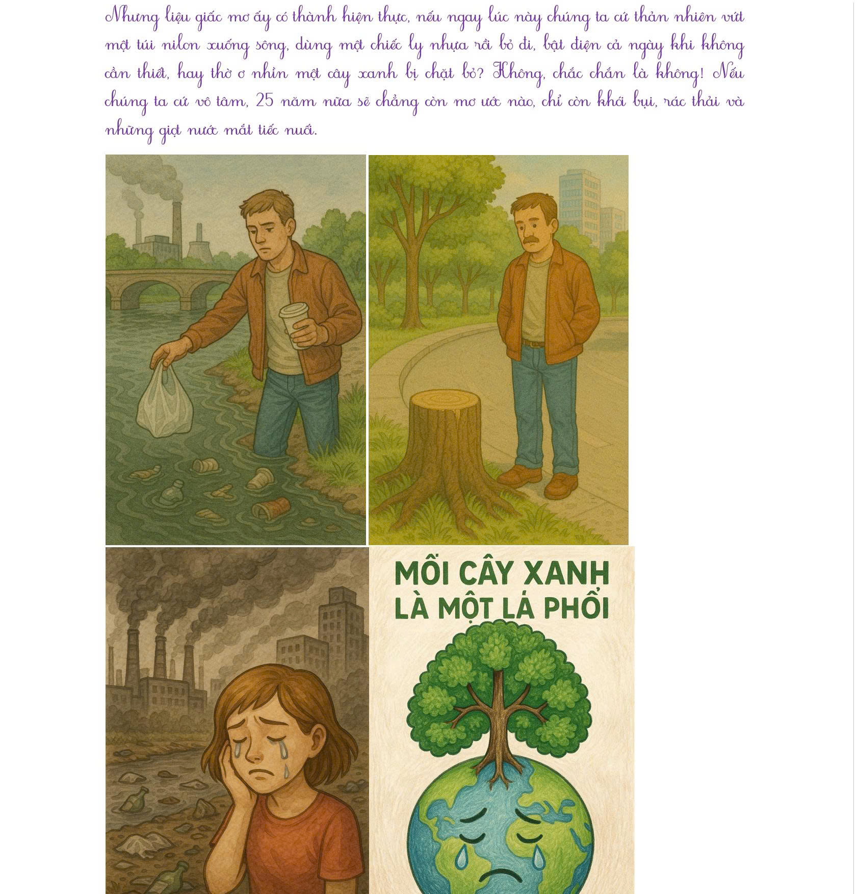 Chia sẻ uớc mơ liên quan đến năng lượng xanh, giáo dục xanh, lối sống xanh về cuộc sống xanh trên Trái đất vào năm 2050.