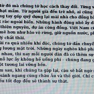 Chia sẻ uớc mơ liên quan đến năng lượng xanh, giáo dục xanh, lối sống xanh về cuộc sống xanh trên Trái đất vào năm 2050.