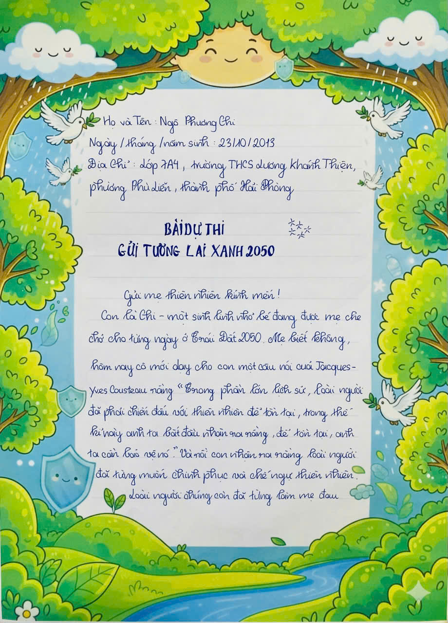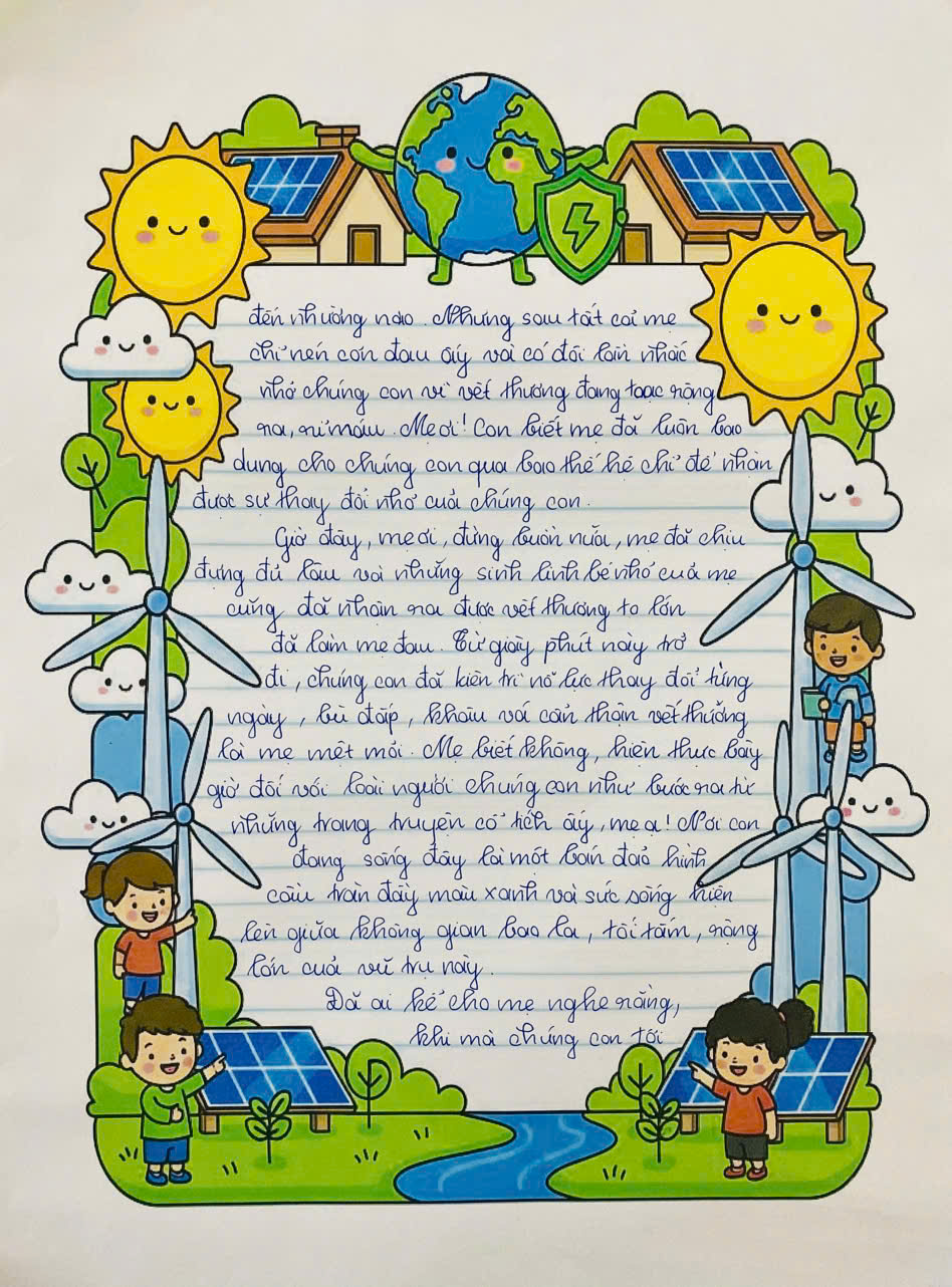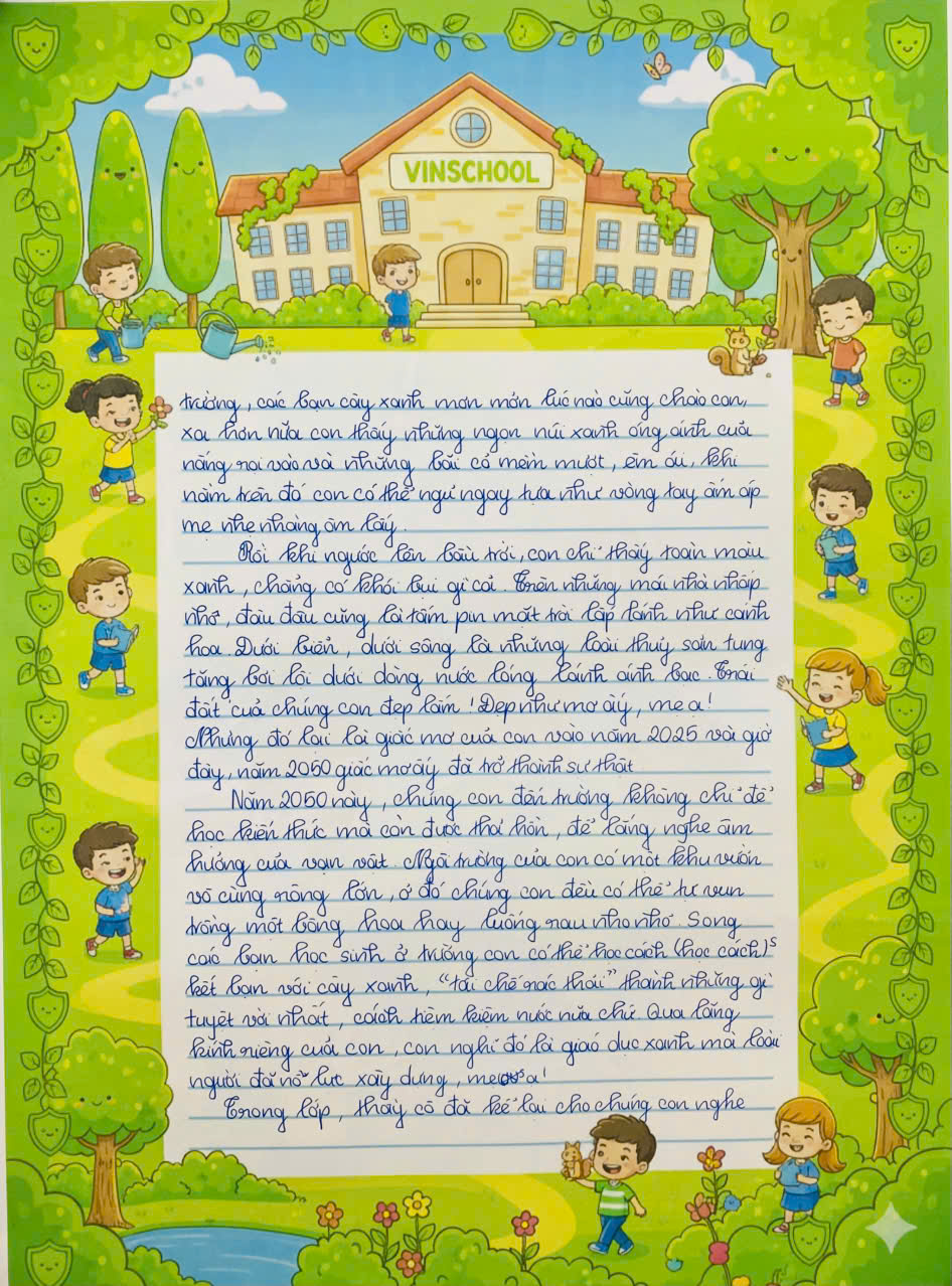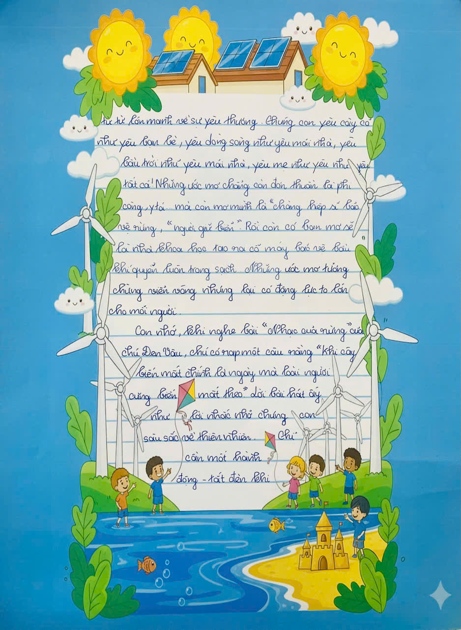 Chia sẻ uớc mơ liên quan đến năng lượng xanh, giáo dục xanh, lối sống xanh về cuộc sống xanh trên Trái đất vào năm 2050.