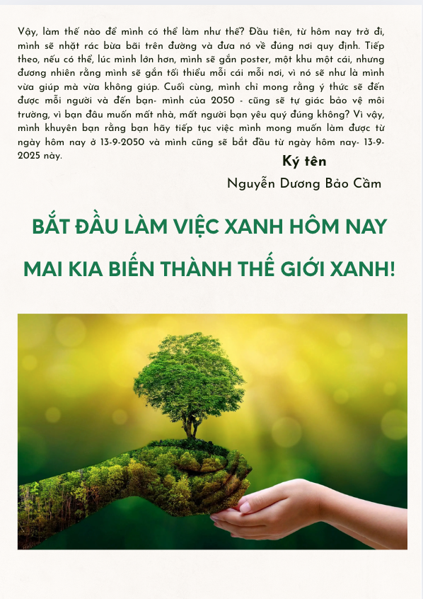 Chia sẻ uớc mơ liên quan đến năng lượng xanh, giáo dục xanh, lối sống xanh về cuộc sống xanh trên Trái đất vào năm 2050.