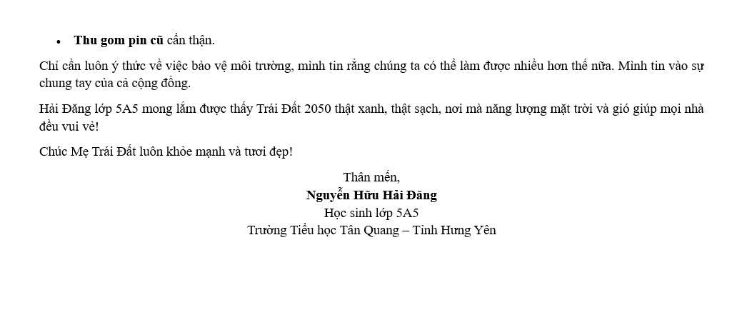 Chia sẻ uớc mơ liên quan đến năng lượng xanh, giáo dục xanh, lối sống xanh về cuộc sống xanh trên Trái đất vào năm 2050.