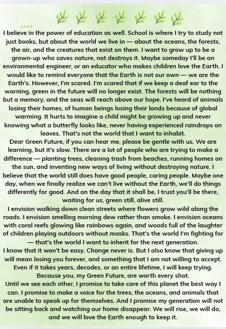 Chia sẻ uớc mơ liên quan đến năng lượng xanh, giáo dục xanh, lối sống xanh về cuộc sống xanh trên Trái đất vào năm 2050.