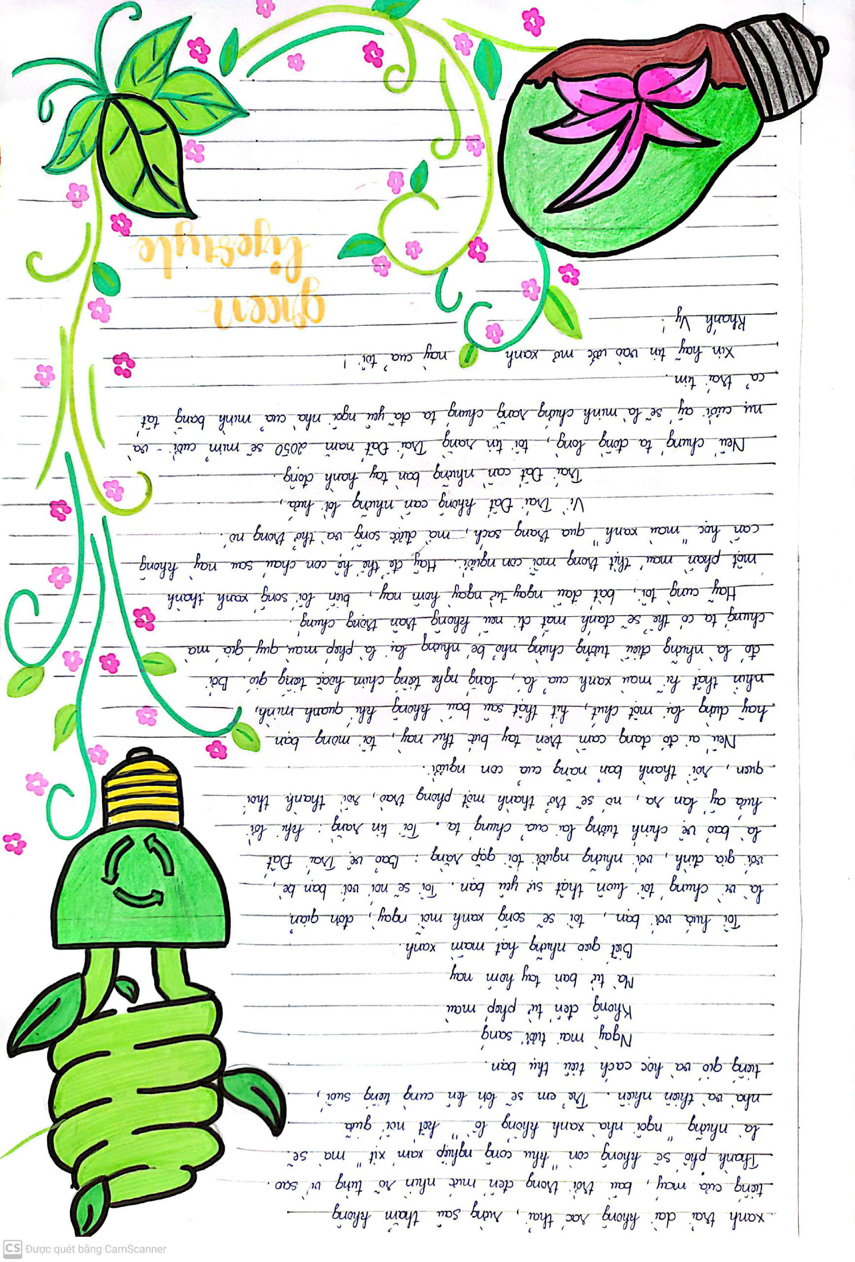 Chia sẻ uớc mơ liên quan đến năng lượng xanh, giáo dục xanh, lối sống xanh về cuộc sống xanh trên Trái đất vào năm 2050.