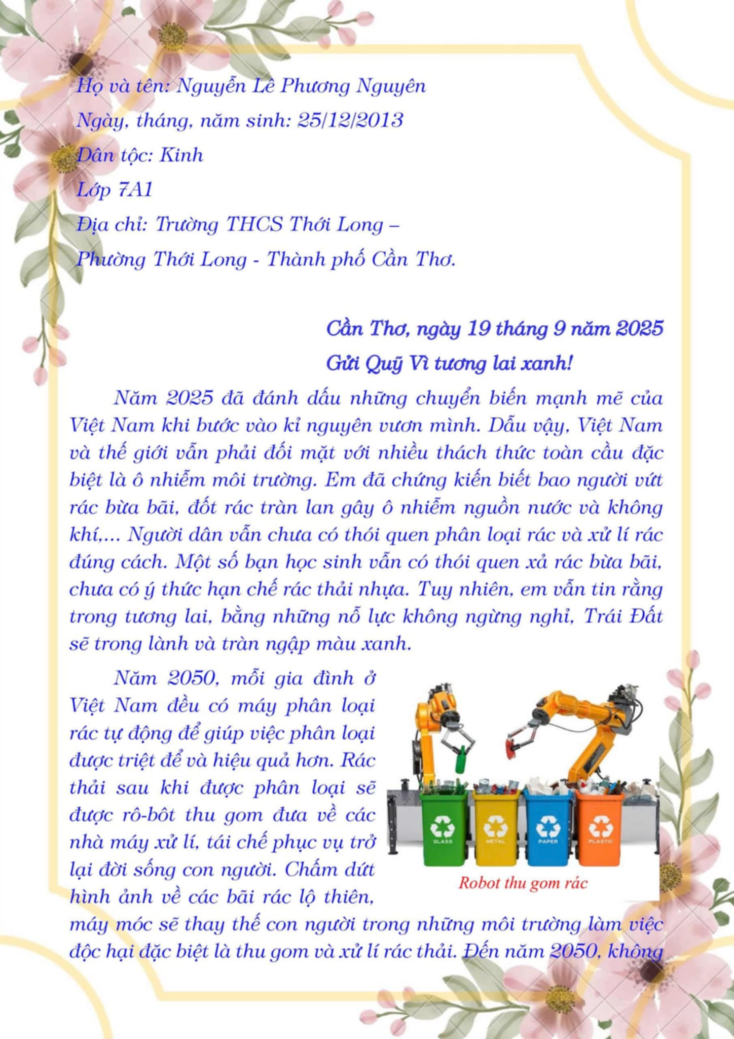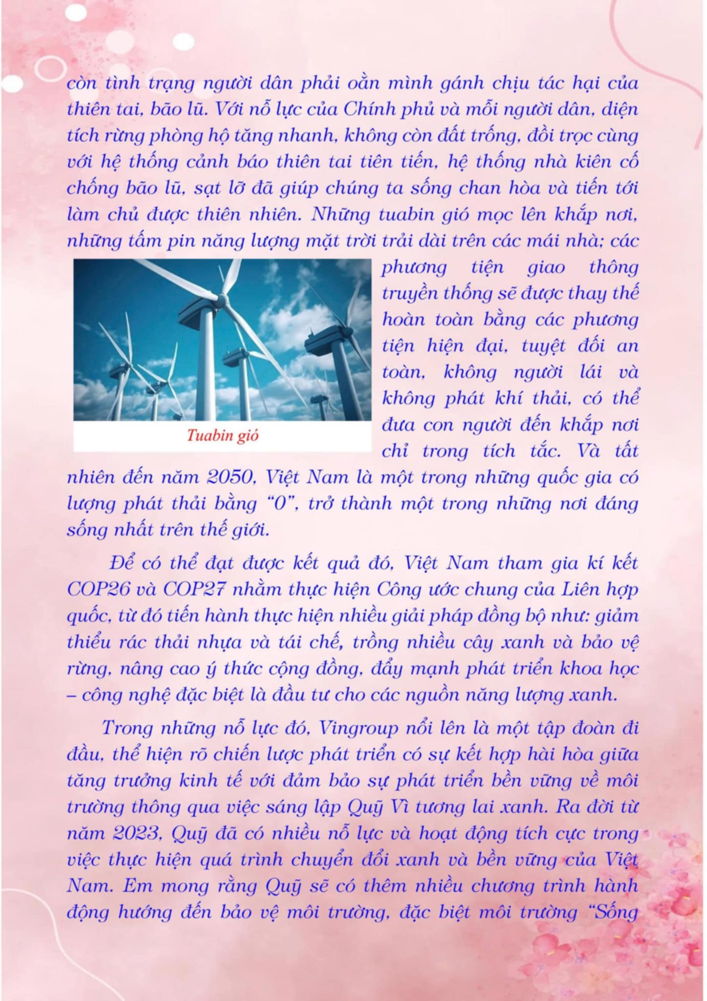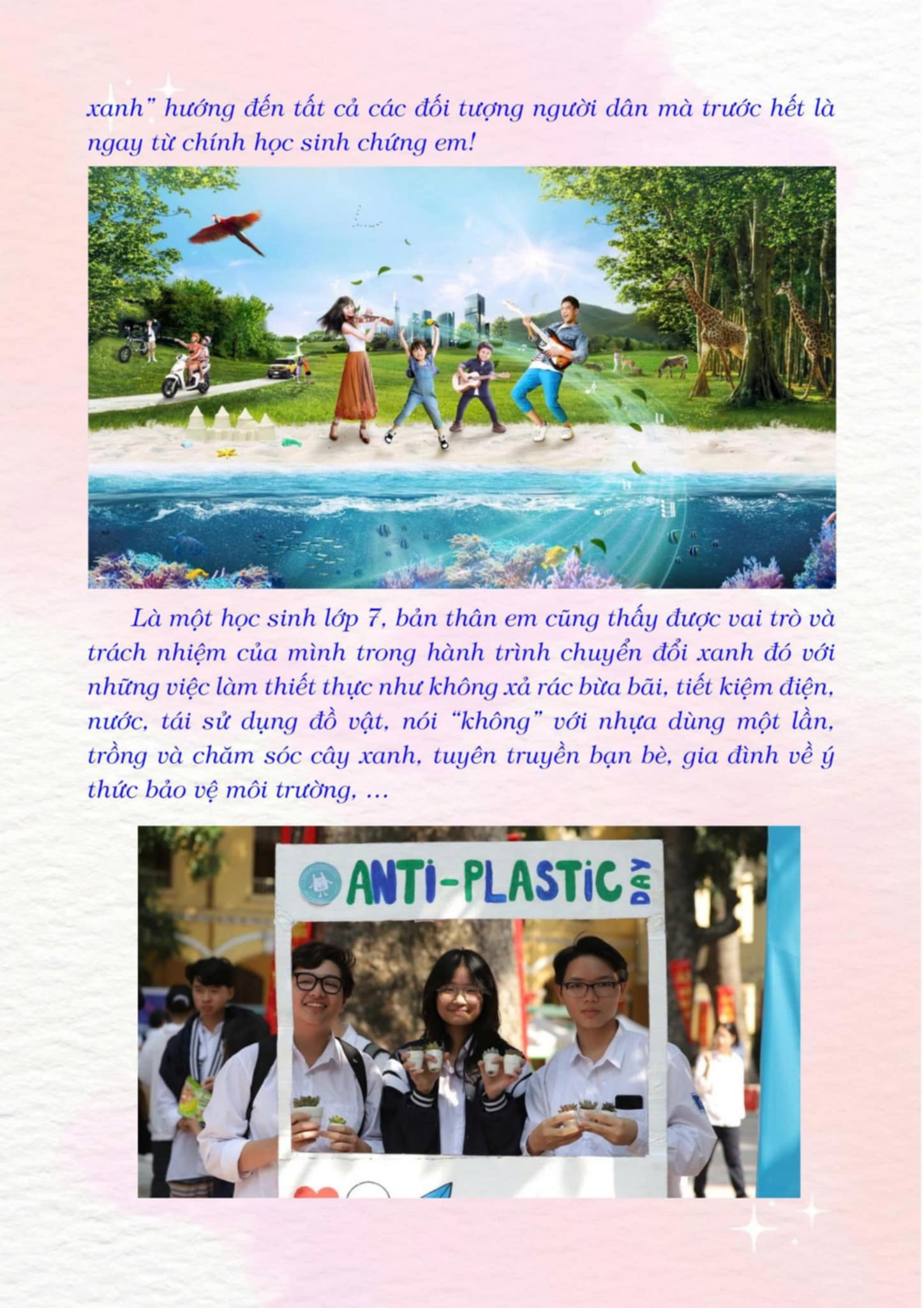 Chia sẻ uớc mơ liên quan đến năng lượng xanh, giáo dục xanh, lối sống xanh về cuộc sống xanh trên Trái đất vào năm 2050.