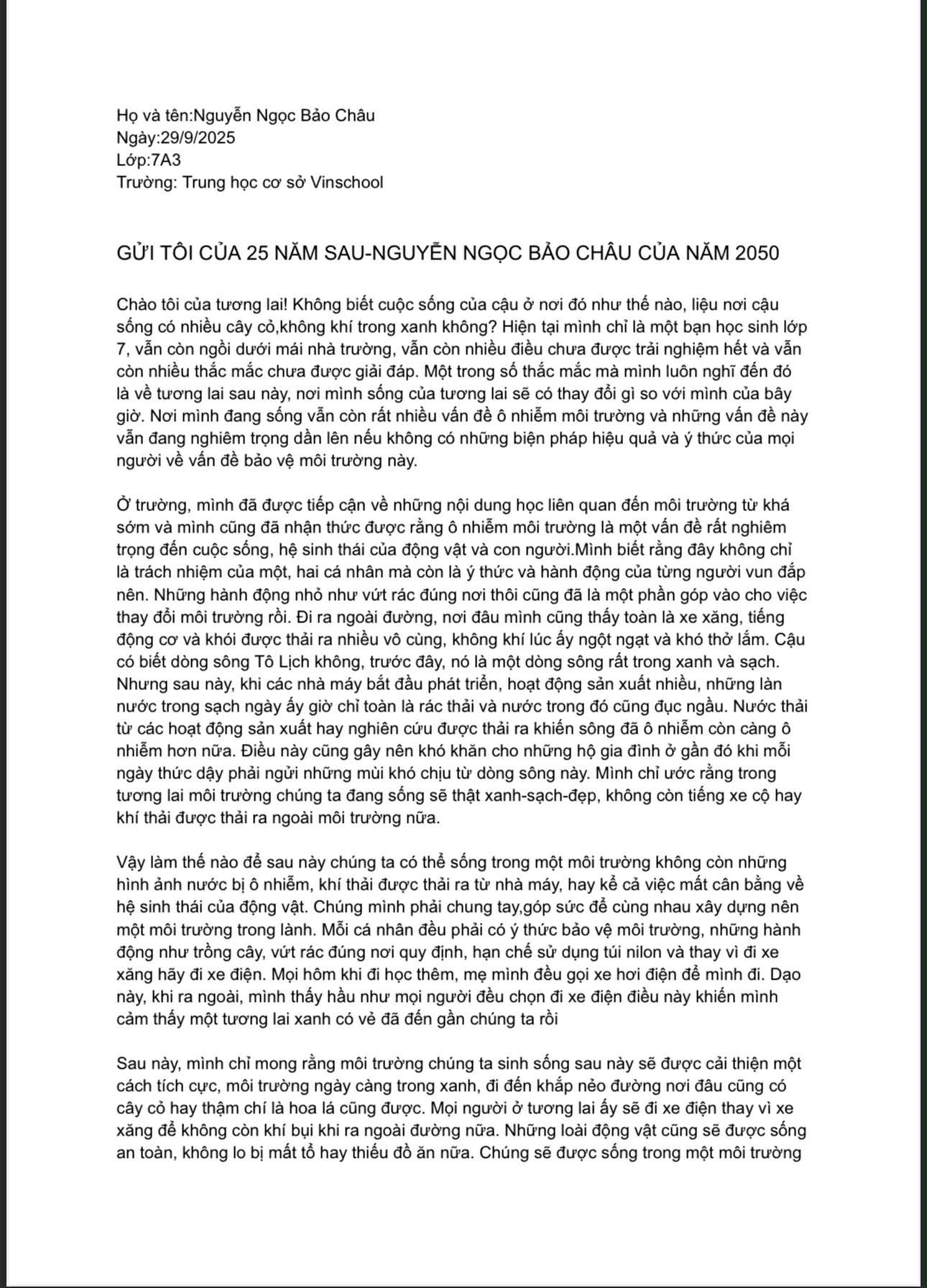 Chia sẻ uớc mơ liên quan đến năng lượng xanh, giáo dục xanh, lối sống xanh về cuộc sống xanh trên Trái đất vào năm 2050.