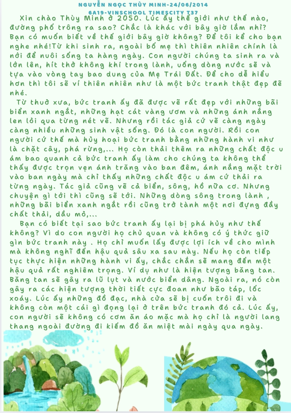 Chia sẻ uớc mơ liên quan đến năng lượng xanh, giáo dục xanh, lối sống xanh về cuộc sống xanh trên Trái đất vào năm 2050.