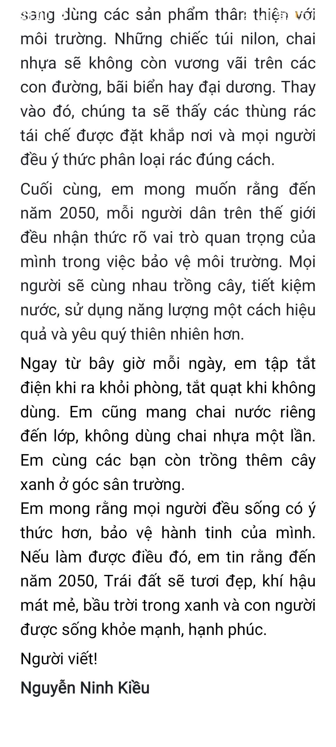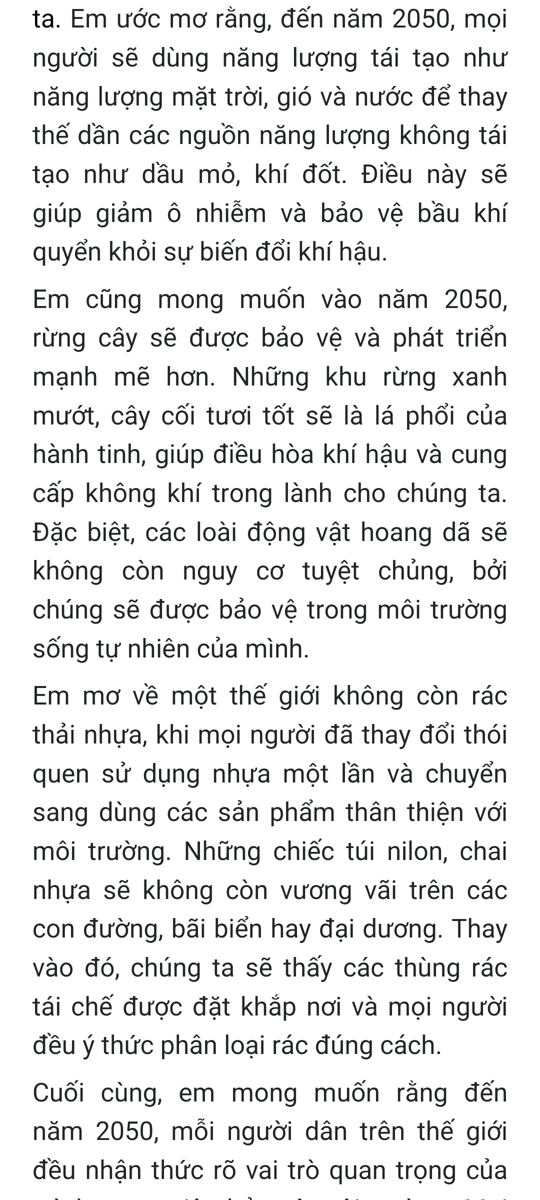 Chia sẻ uớc mơ liên quan đến năng lượng xanh, giáo dục xanh, lối sống xanh về cuộc sống xanh trên Trái đất vào năm 2050.