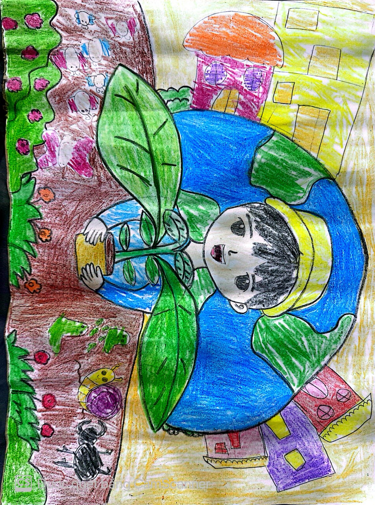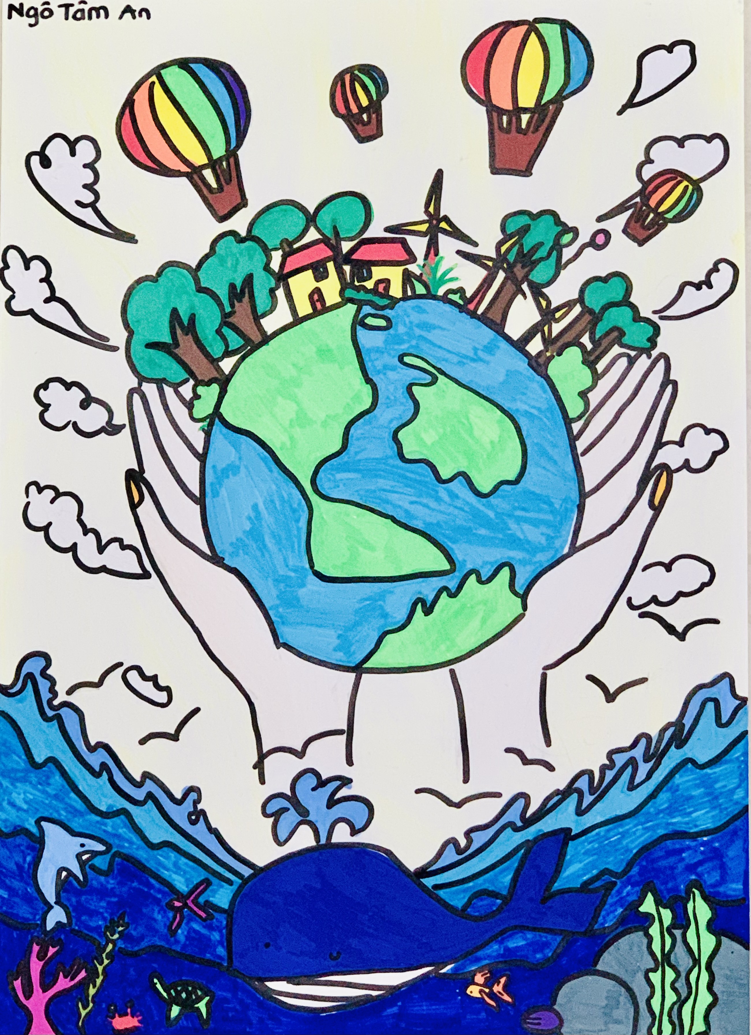 Qua bức tranh này, em muốn gửi đến mọi người hãy bảo vệ môi trường và không lãng phí nước.