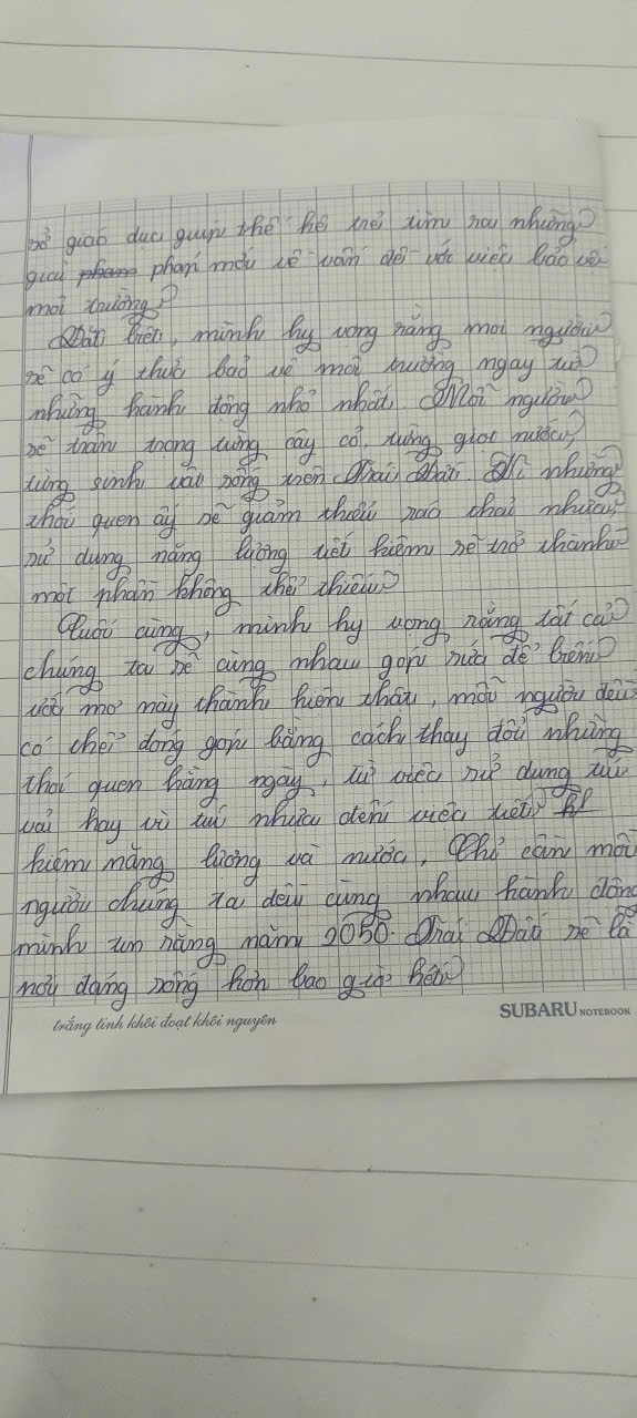 Chia sẻ uớc mơ liên quan đến năng lượng xanh, giáo dục xanh, lối sống xanh về cuộc sống xanh trên Trái đất vào năm 2050.