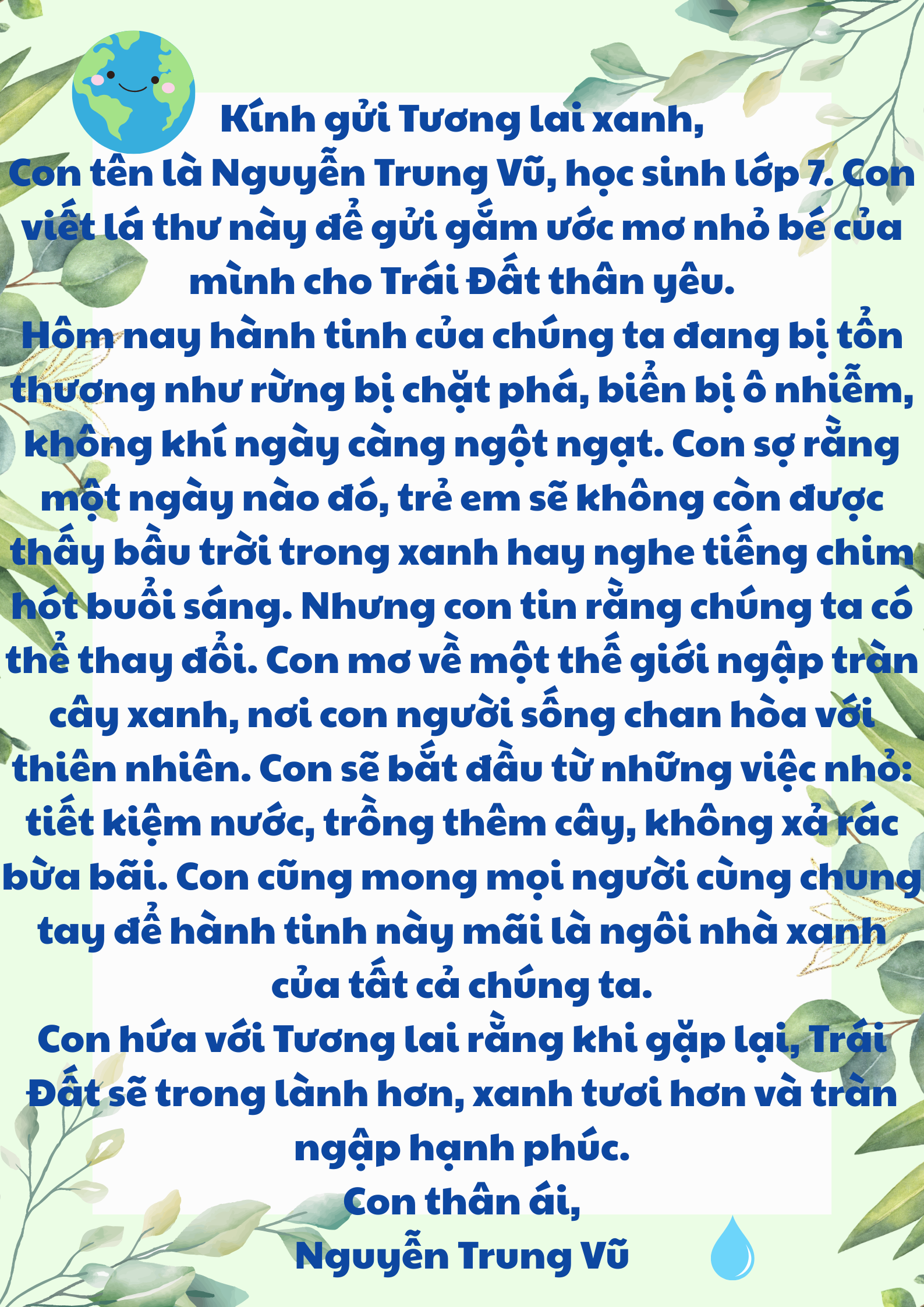 Chia sẻ uớc mơ liên quan đến năng lượng xanh, giáo dục xanh, lối sống xanh về cuộc sống xanh trên Trái đất vào năm 2050.