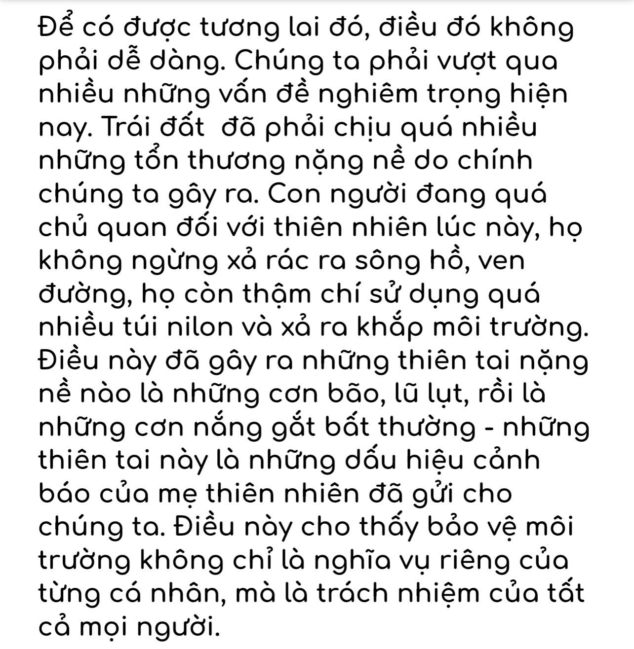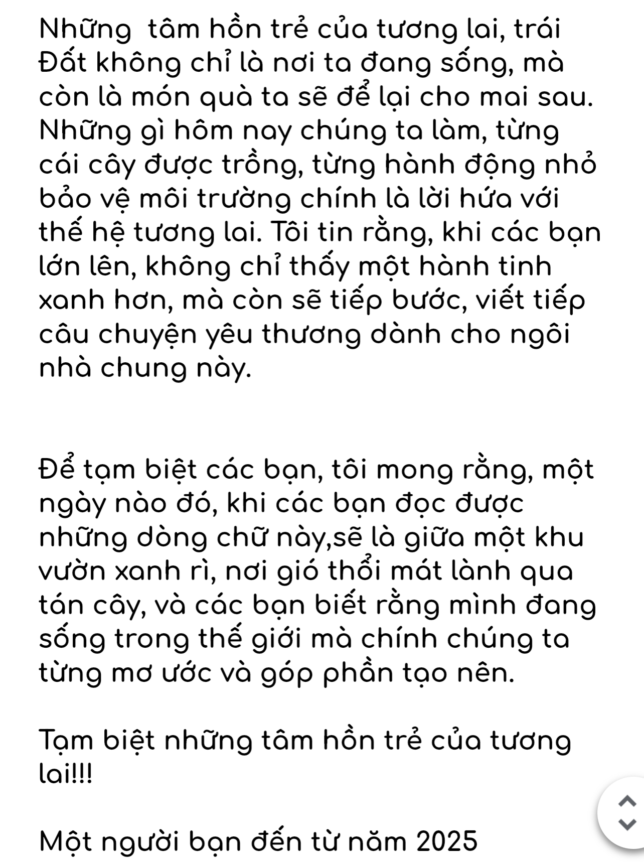 Chia sẻ uớc mơ liên quan đến năng lượng xanh, giáo dục xanh, lối sống xanh về cuộc sống xanh trên Trái đất vào năm 2050.