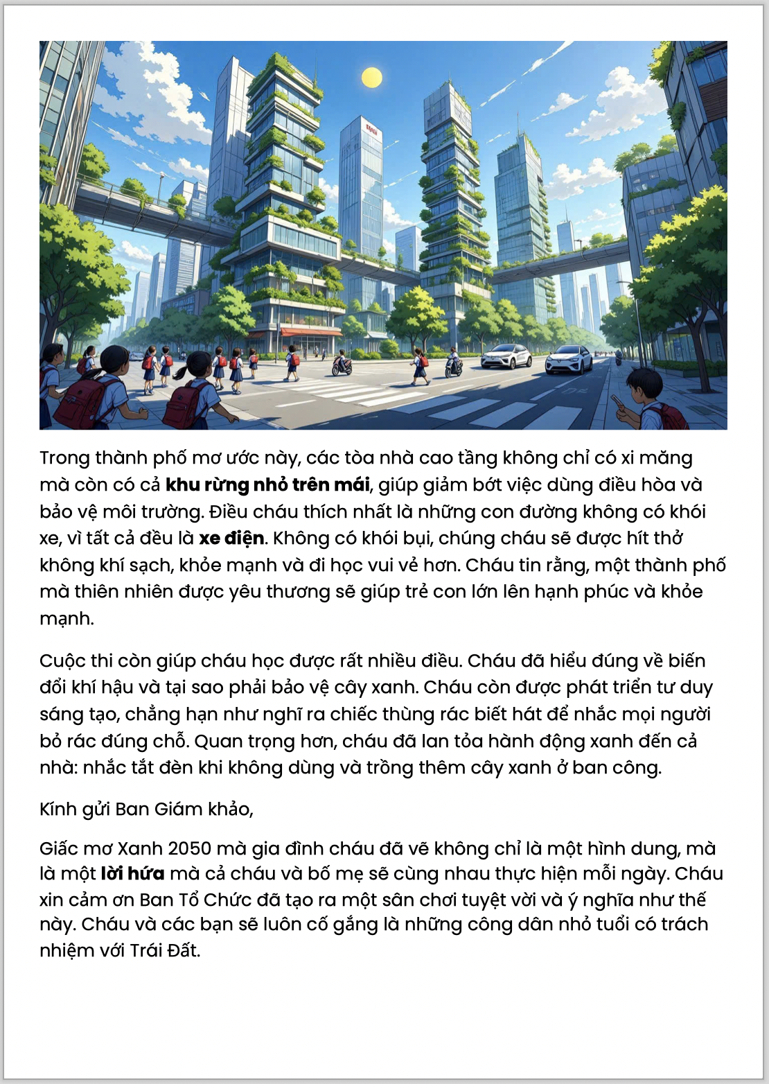 Chia sẻ uớc mơ liên quan đến năng lượng xanh, giáo dục xanh, lối sống xanh về cuộc sống xanh trên Trái đất vào năm 2050.